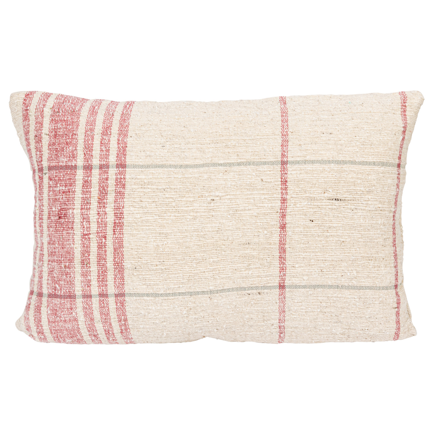 Catalog Name: 24"L x 16"H Woven Cotton Slub Lumbar Pillow w/ Grid Pattern, Natural & Red