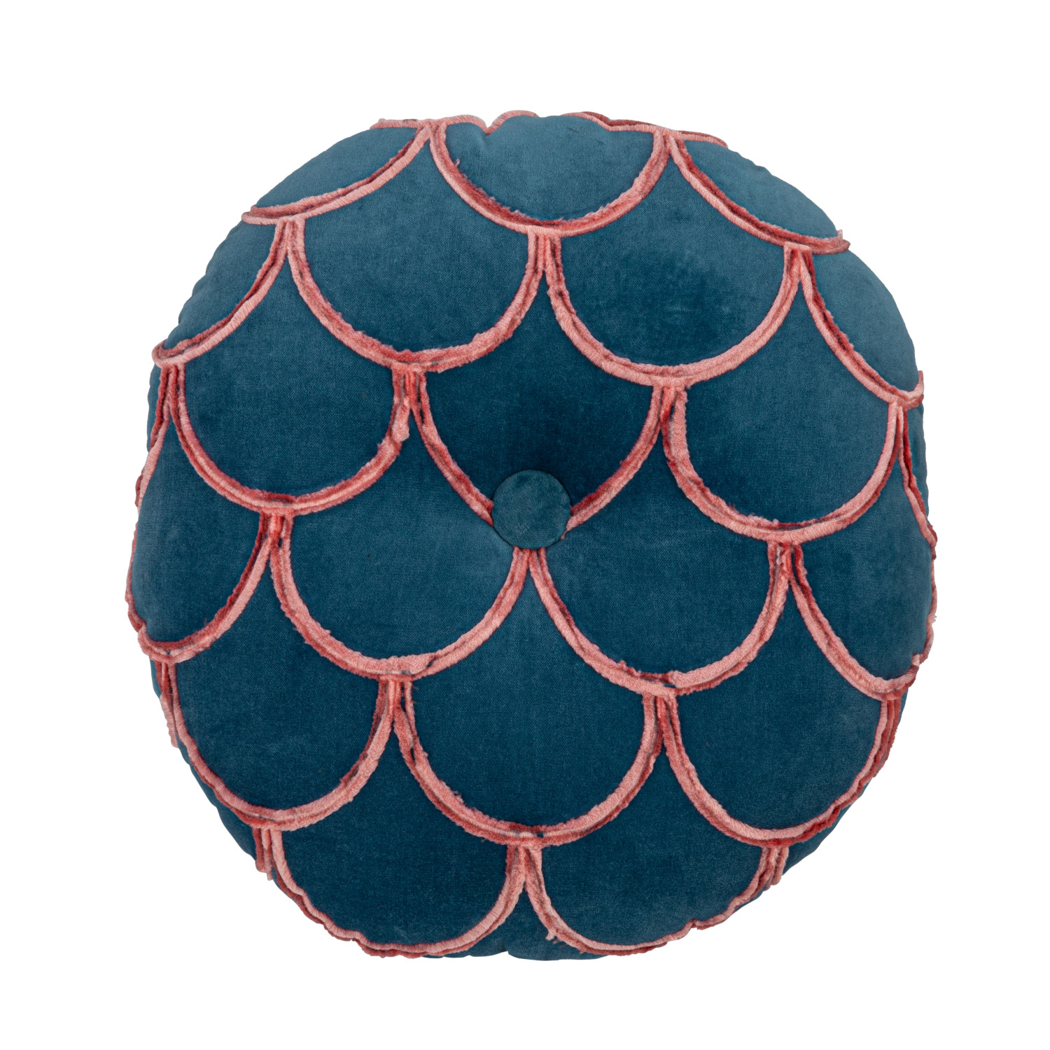 Add a touch of charm and sophistication to any space with the Round Cotton Pillow with a tufted scallop pattern in navy blue and pink creating a visually appealing design that complements various decor styles. Primarily made of cotton, a natural and breathable fabric that offers comfort and durability, may contain other fibers that enhance its texture and visual appeal. The pillow is filled with polyester filler, providing a plush and supportive feel, it retains its shape over time, ensuring long-lasting comfort and resilience. The product is primarily made of cotton with other fibers and polyester filler. This pillow measures 18 inches in length and 18 inches in width. Add a touch of charm and sophistication to any space with the Round Cotton Pillow with a tufted scallop pattern in navy blue and pink creating a visually appealing design that complements various decor styles. Primarily made of cotton, a natural and breathable fabric that offers comfort and durability, may contain other fibers that enhance its texture and visual appeal. The pillow is filled with polyester filler, providing a plush and supportive feel, it retains its shape over time, ensuring long-lasting comfort and resilience. The product is primarily made of cotton with other fibers and polyester filler.