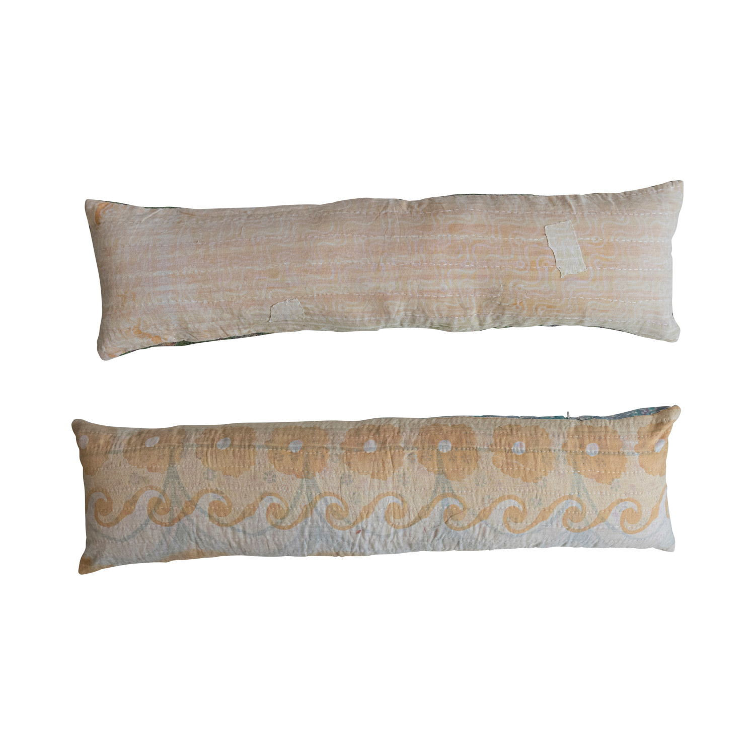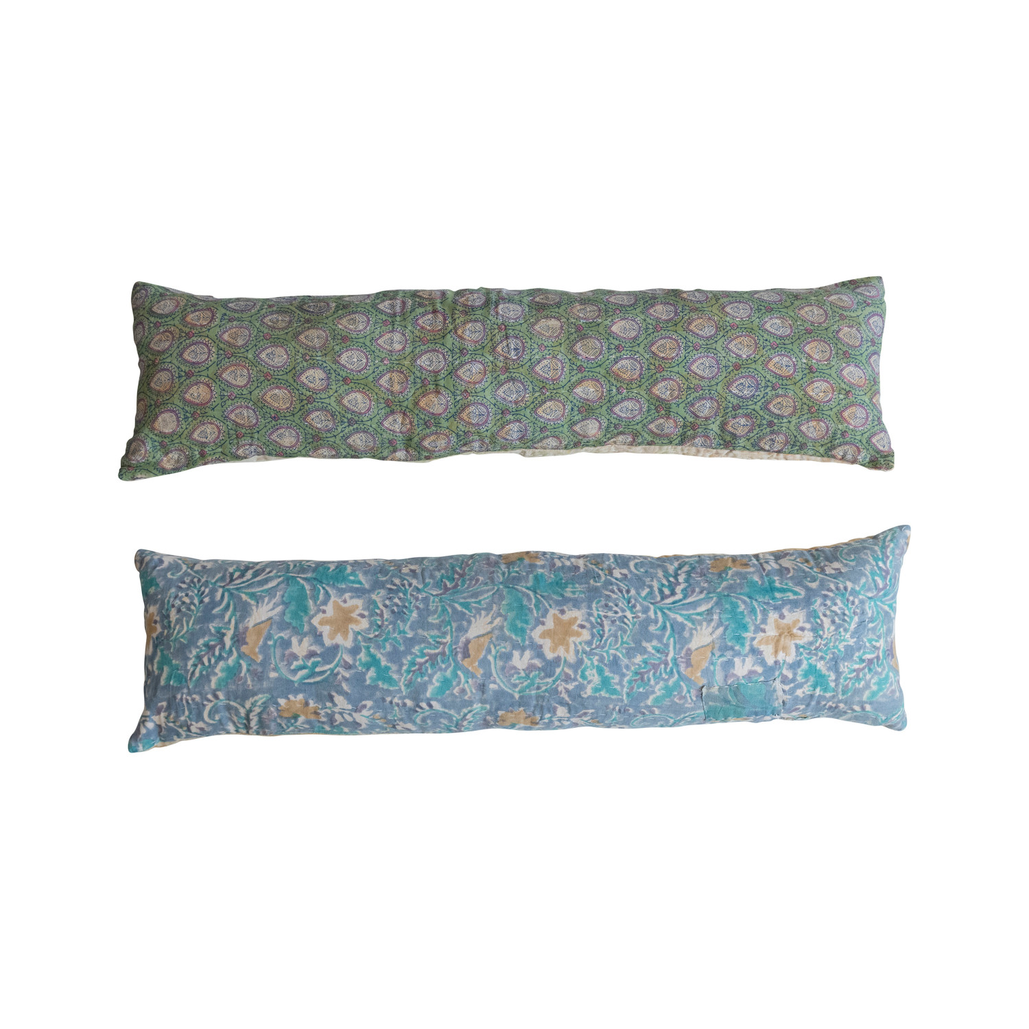Vintage Cotton Kantha Reversible Lumbar Pillow, 2 Styles (Each One Will Vary)