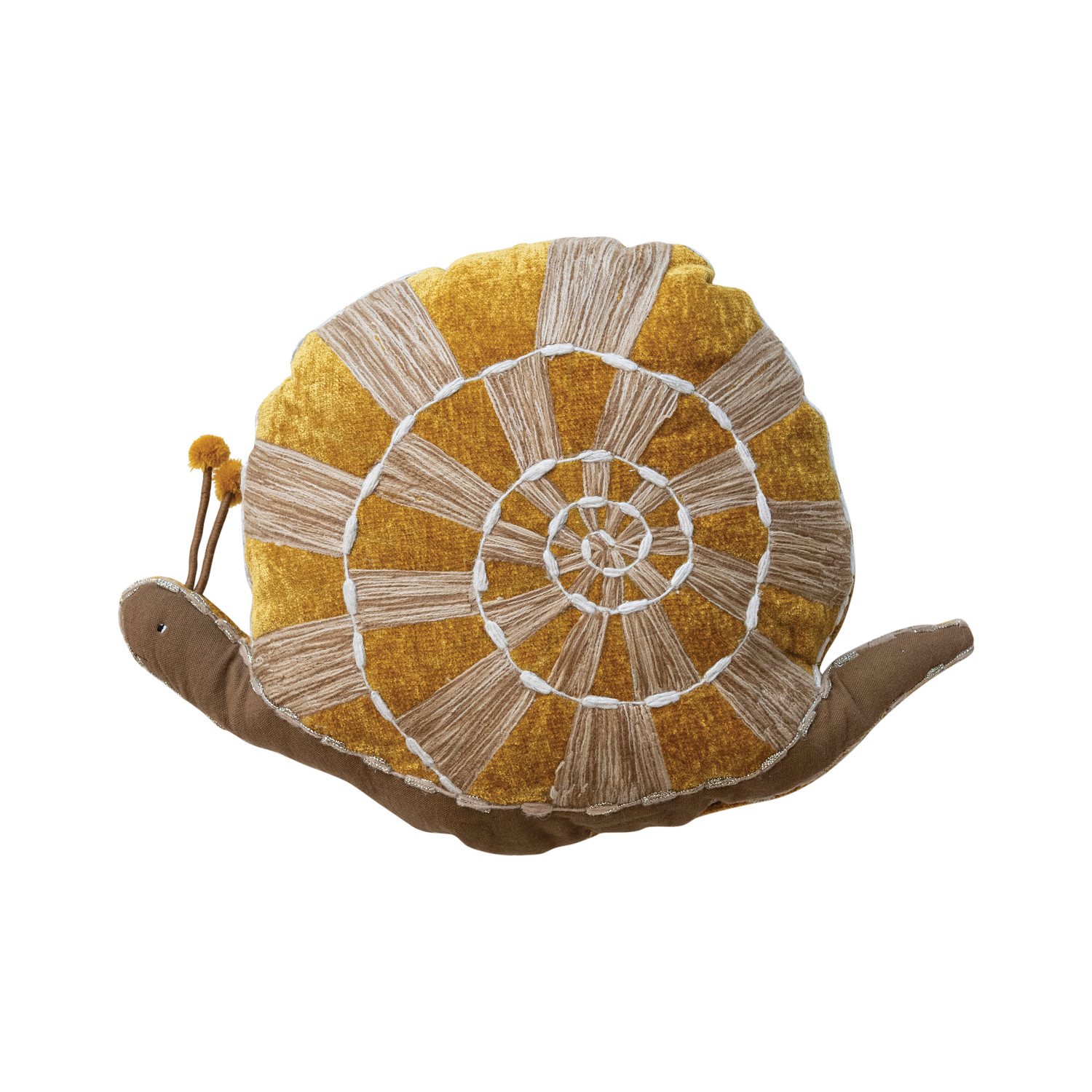 Catalog Name: 17-3/4"L x 14"W Hand-Woven Fabric Snail Shaped Pillow, Brown, Cream & Mustard Color