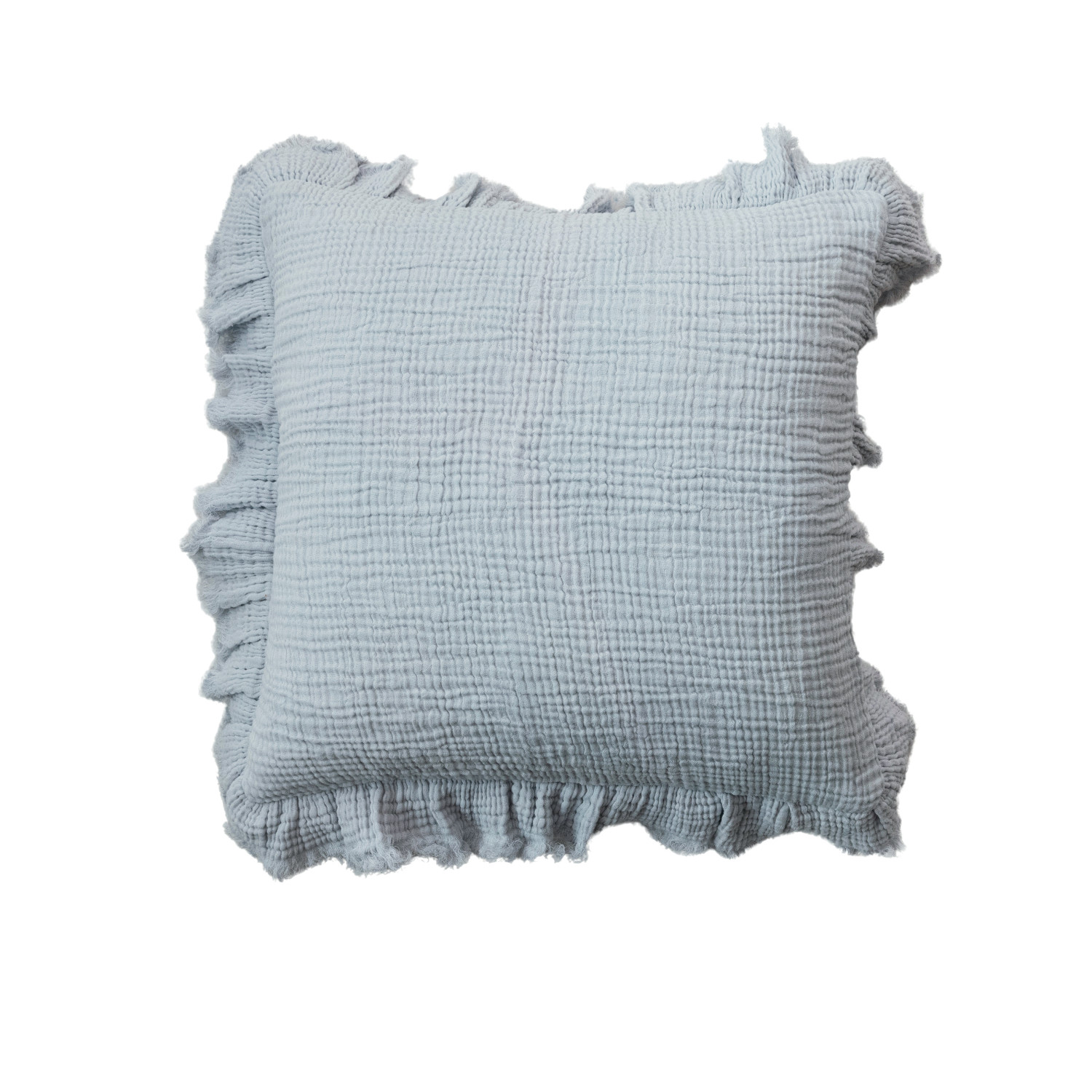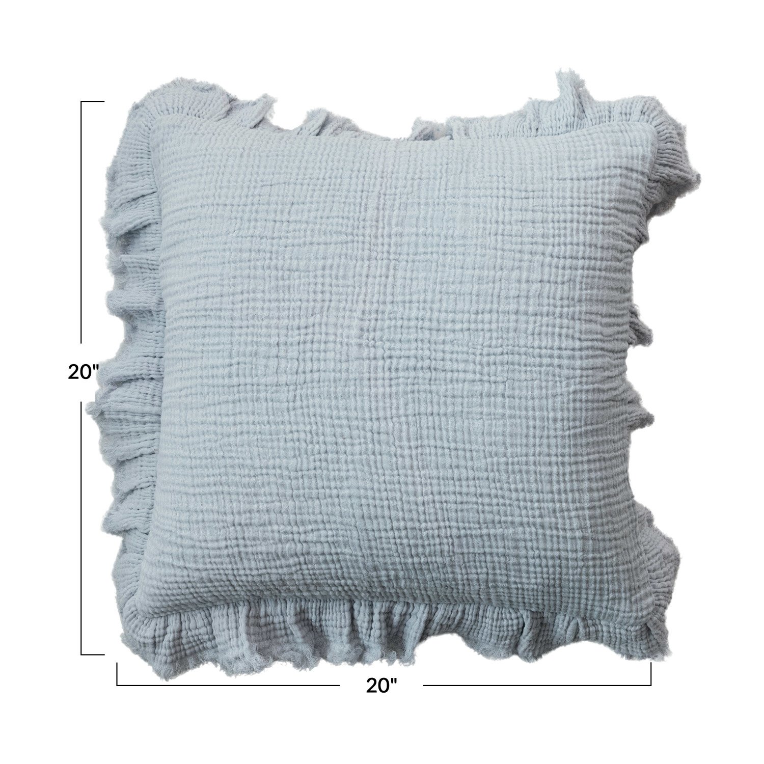 Catalog Name: 20" Square Cotton Double Cloth Pillow w/ Ruffled Edge, Light Blue
