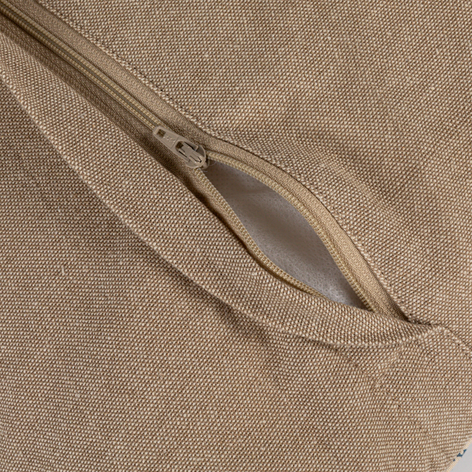 Catalog Name: 20" Square Cotton & Linen Printed Pillow w/ Paisley Pattern, Hand-Embroidered Kantha Stitch & Chambray Back, Natural & Blue (Each One Will Vary)