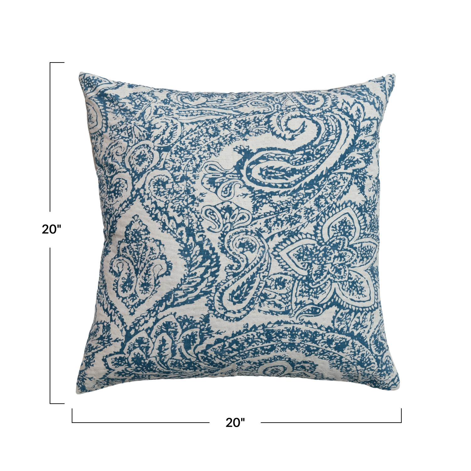 20" Square Cotton & Linen Printed Pillow w/ Pattern (Each One Will Vary)