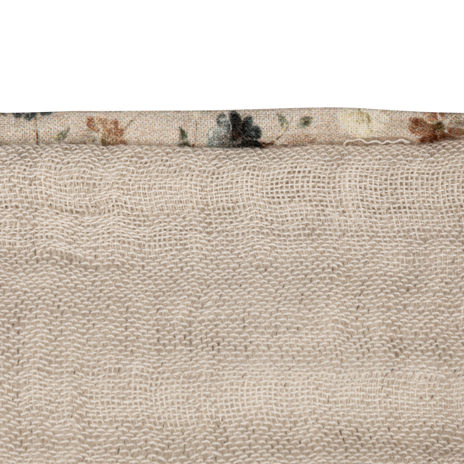 This 18-inch Square Pillow, crafted from a blend of woven cotton and linen, exudes a sense of calm and refinement. The natural color is accented with a subtly patterned edge, making it a versatile piece that complements Scandinavian, farmhouse, or French country decor. The quality materials ensure a soft touch and easy care, while the polyester filling offers ample comfort. Whether it's adorning a couch or dressing up a bed, this pillow is a testament to simple, timeless design. Add a touch of elegance to any room with this stylish and comfortable pillow that effortlessly enhances the overall aesthetic. Its classic design and neutral color make it easy to mix and match with different decor styles for a cohesive look.