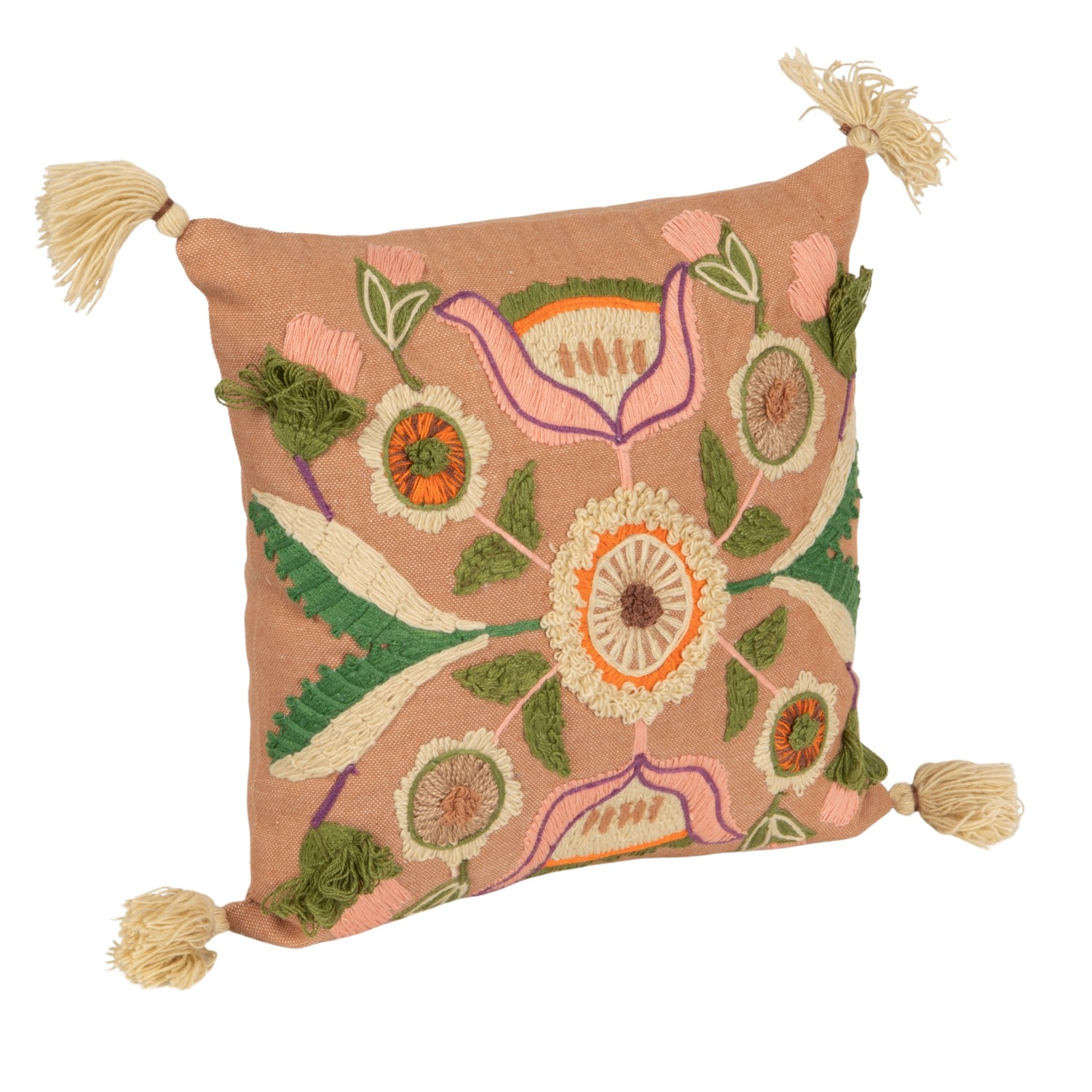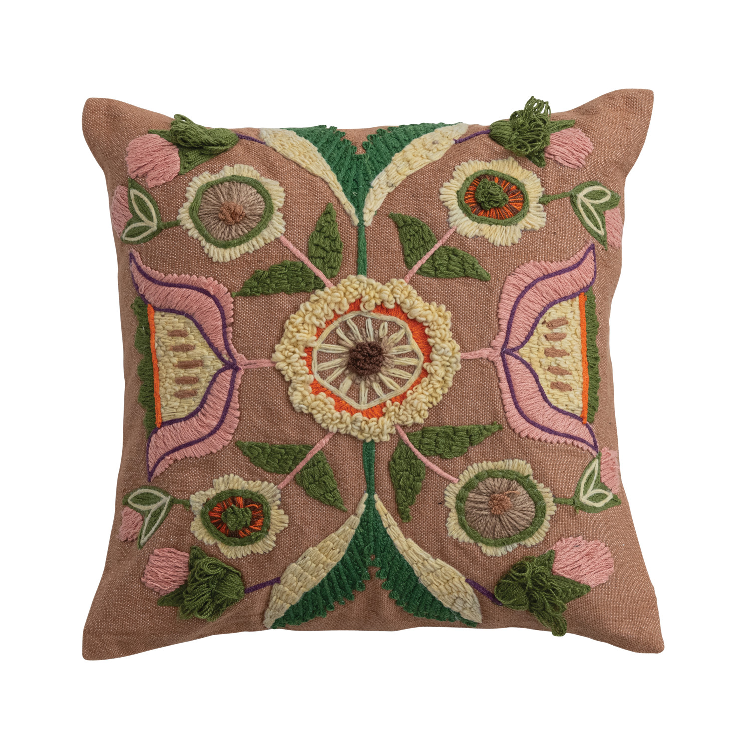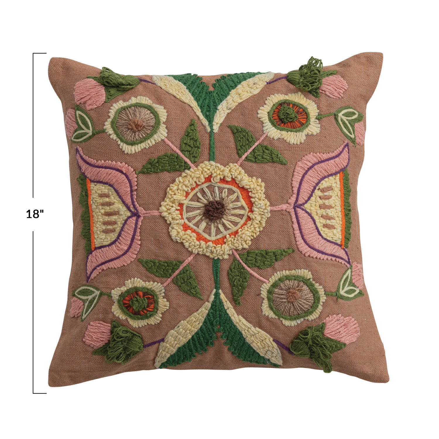 Catalog Name: 18" Square Fabric Indoor/Outdoor Pillow w/ Embroidered Flower Design, Multi Color