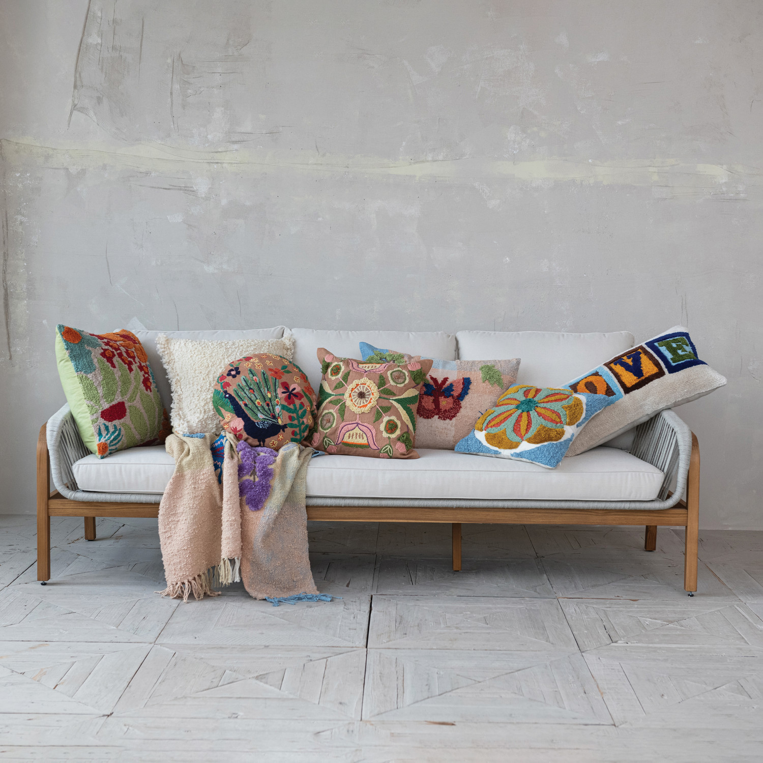 18" Square Fabric Indoor/Outdoor Pillow with Embroidered Design