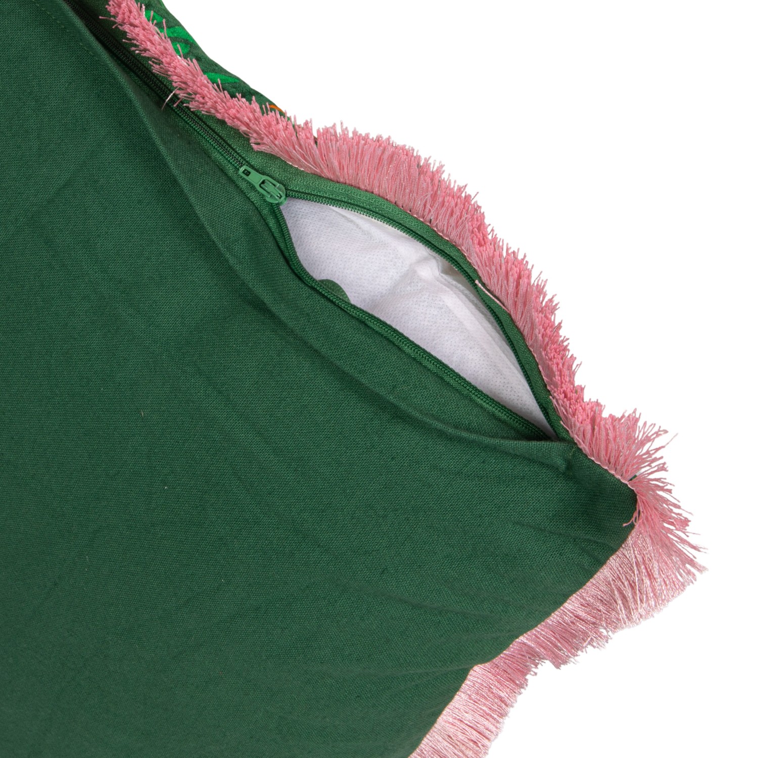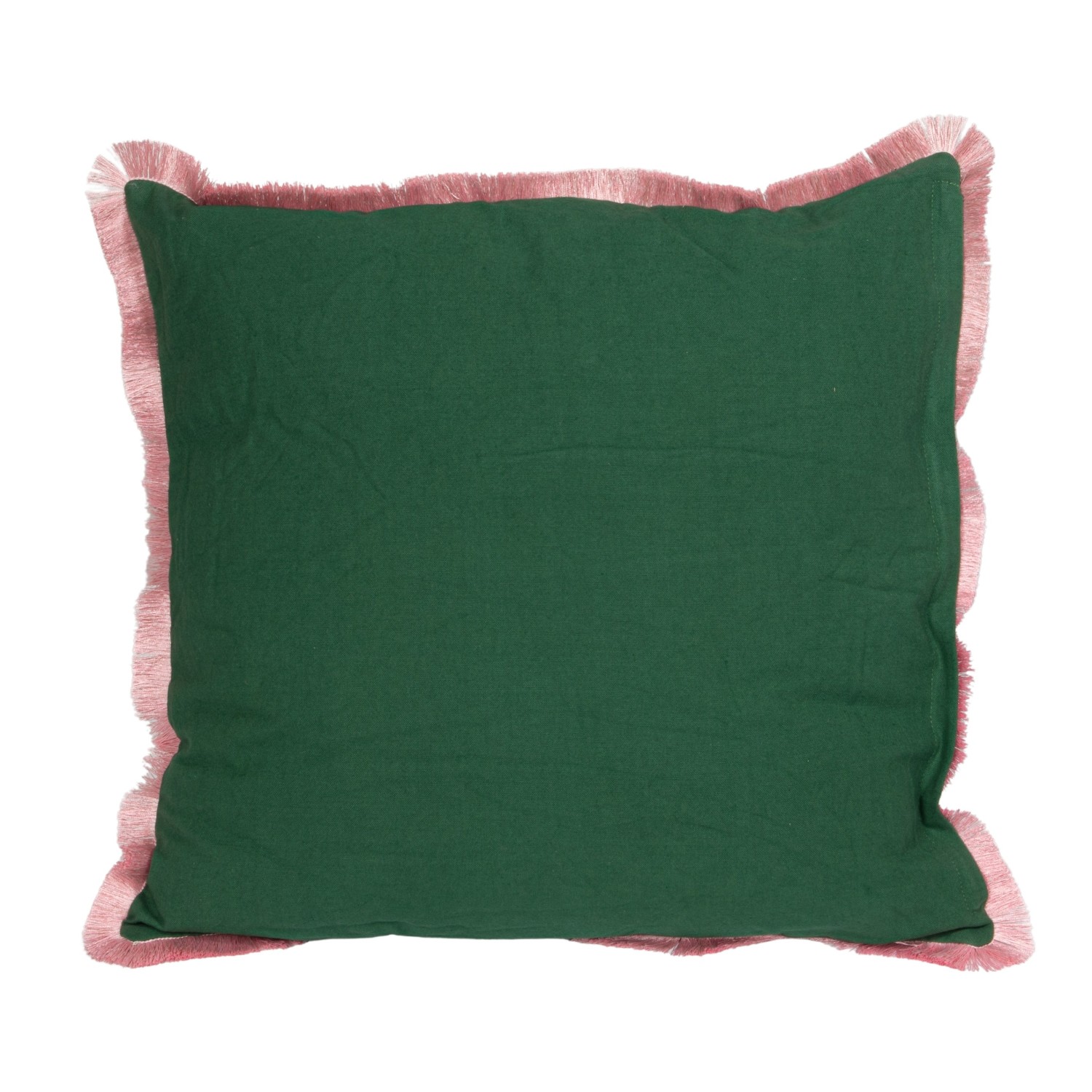 Catalog Name: 20" Square Velvet Printed Pillow w/ Floral Pattern & Eyelash Fringe, Green, Pink & Orange Color