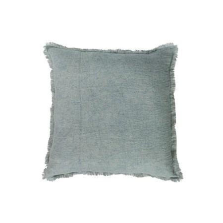 Catalog Name: 24" Square Cotton & Linen Block Printed Pillow w/ Palm Trees & Piping, Natural, Green & Brown