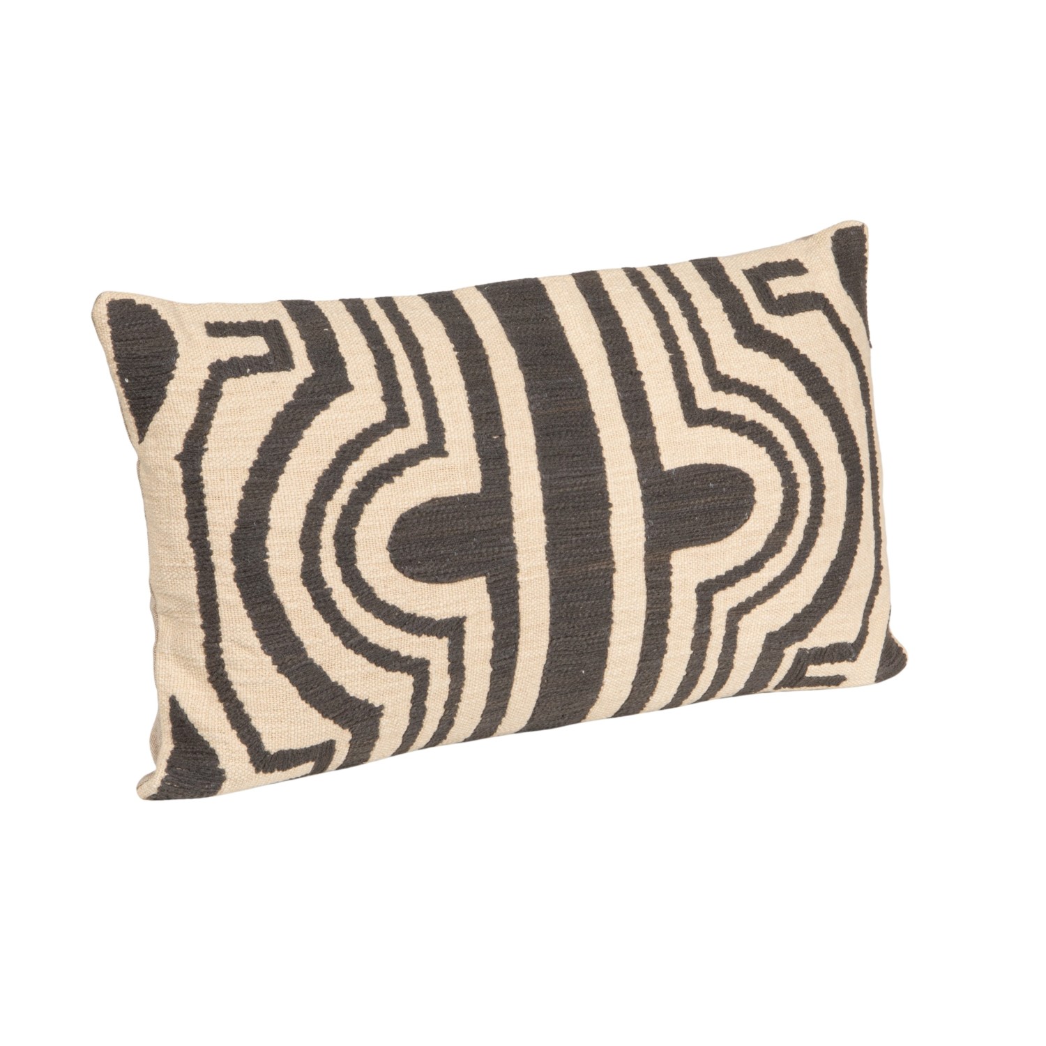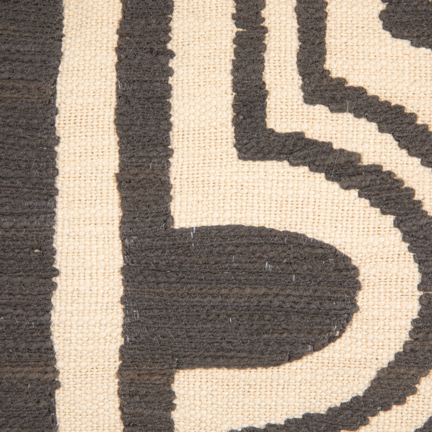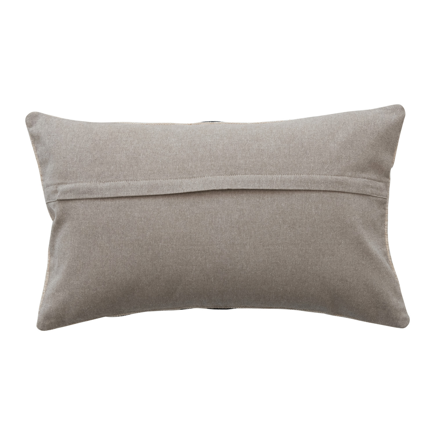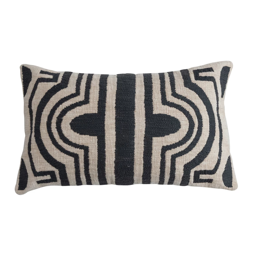 Catalog Name: 24"L x 14"H Cotton Slub Lumbar Pillow w/ Embroidered Line Design, Natural & Charcoal Color