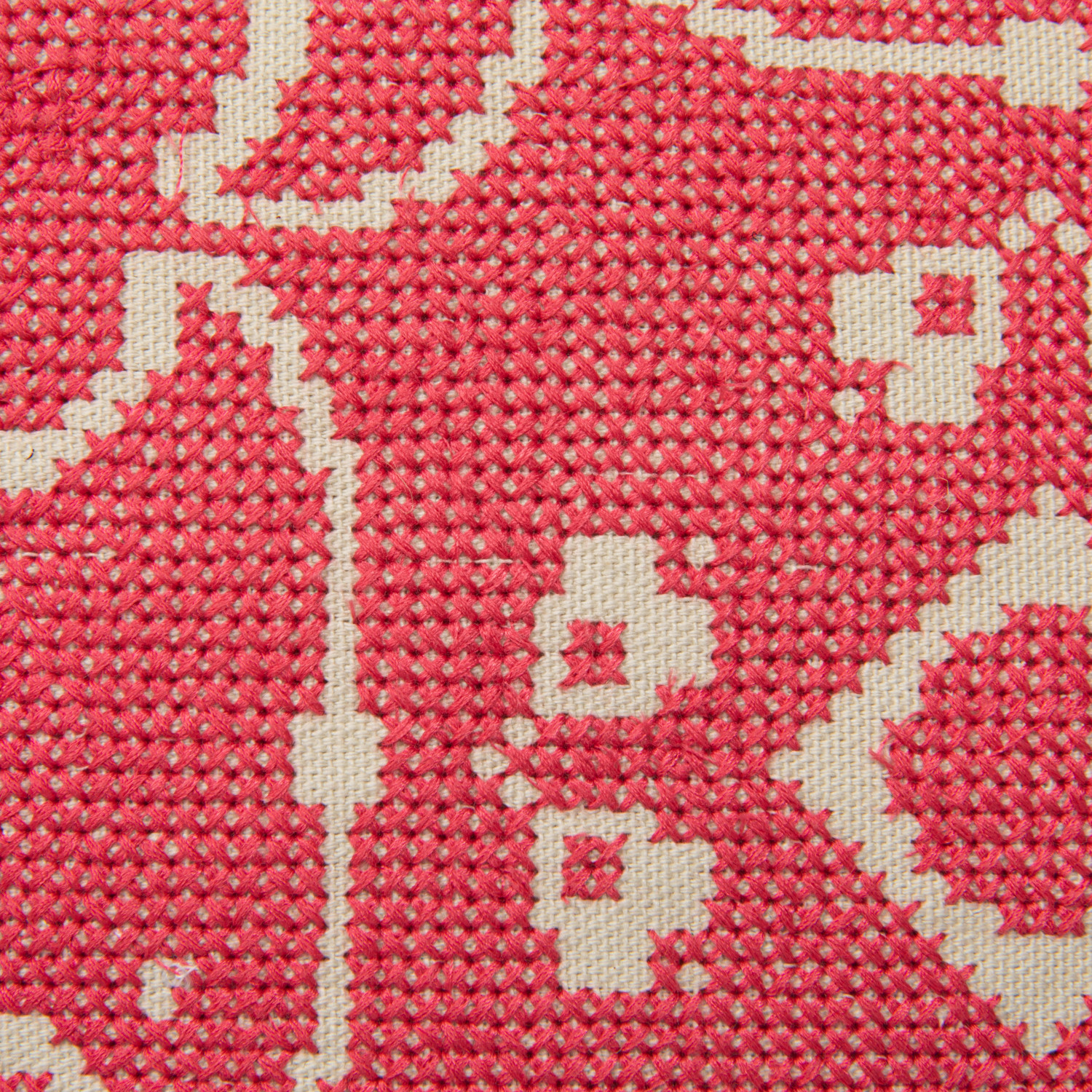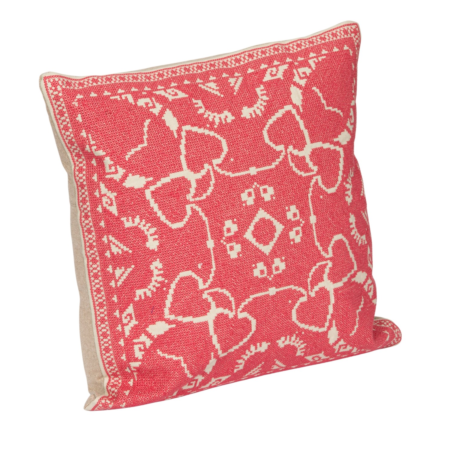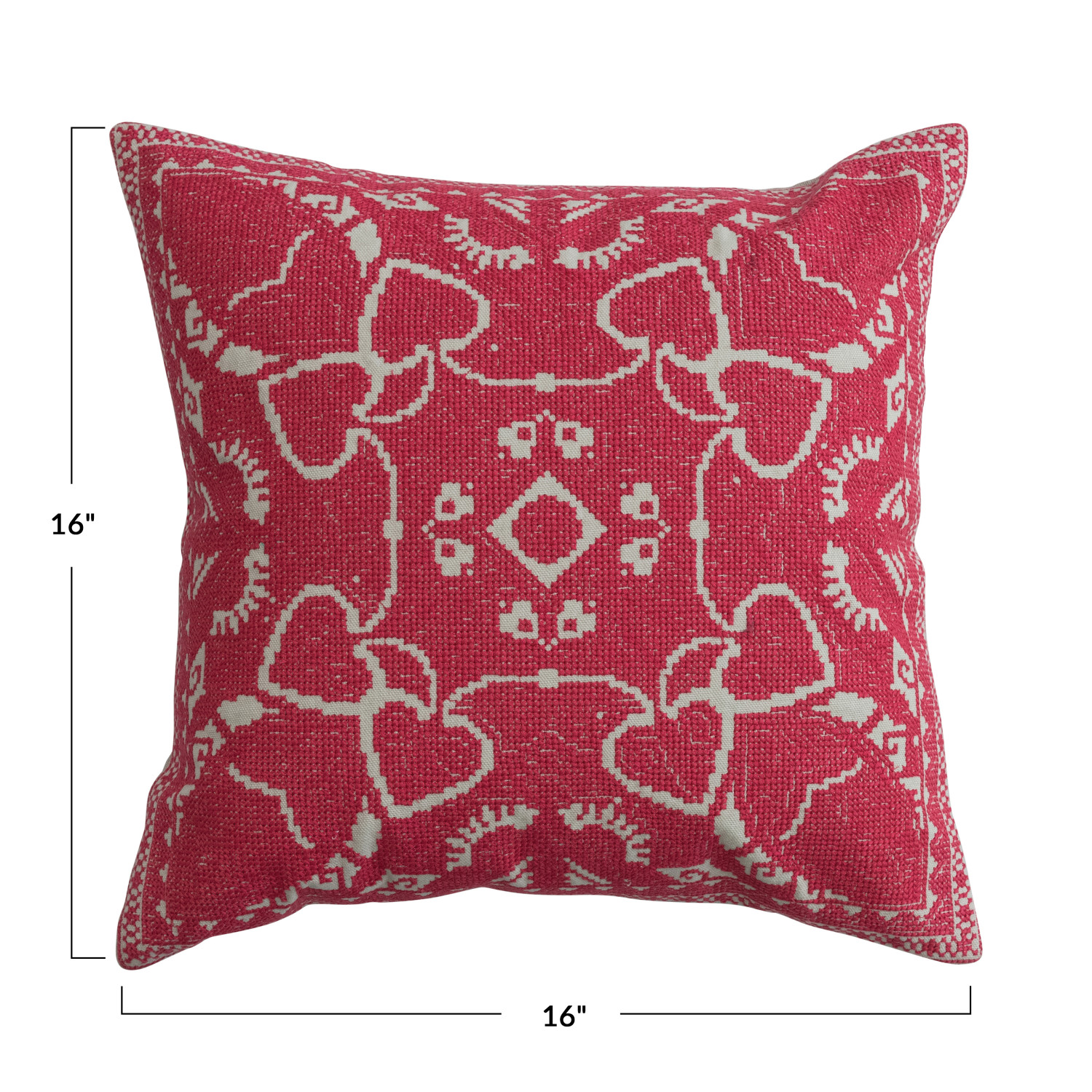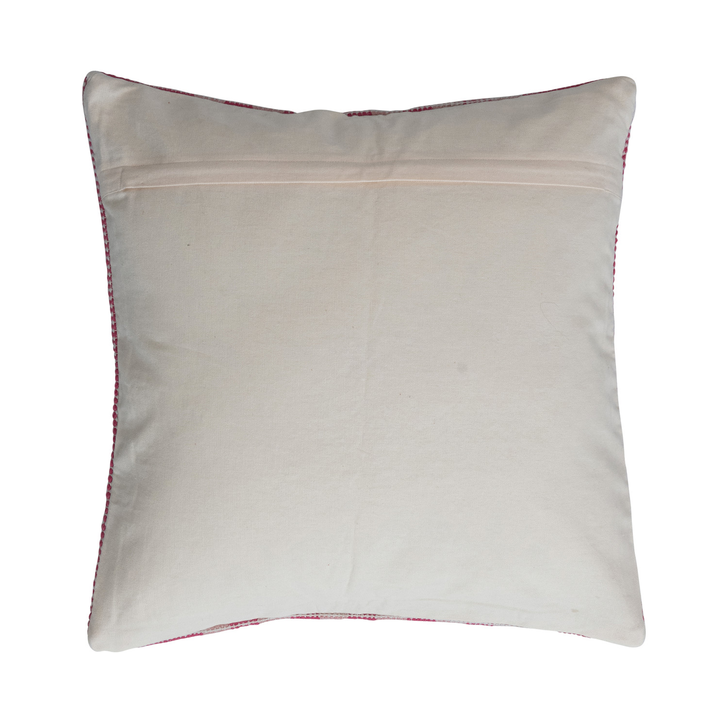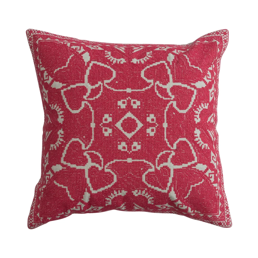 Catalog Name: 16" Square Cotton Pillow w/ Embroidered Design & Chambray Back, Pink & Natural