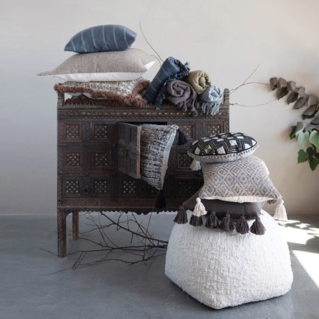 Cotton Blend Crocheted Lumbar Pillow, 3 Colors