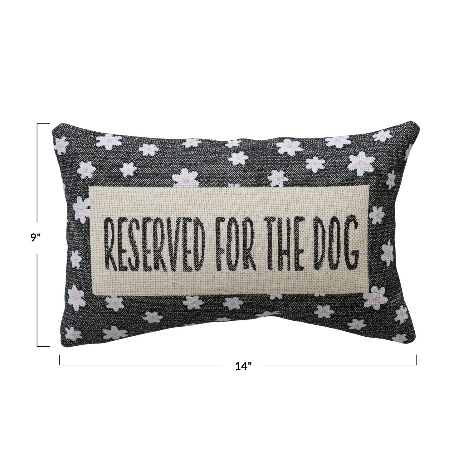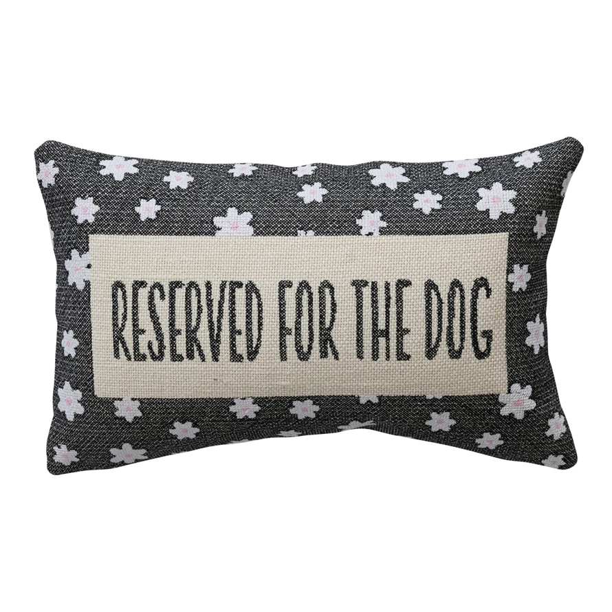 Catalog Name: 14"L x 9"H Cotton & Jute Embroidered Lumbar Pillow w/ Flower Pattern "Reserved For The Dog", Multi Color