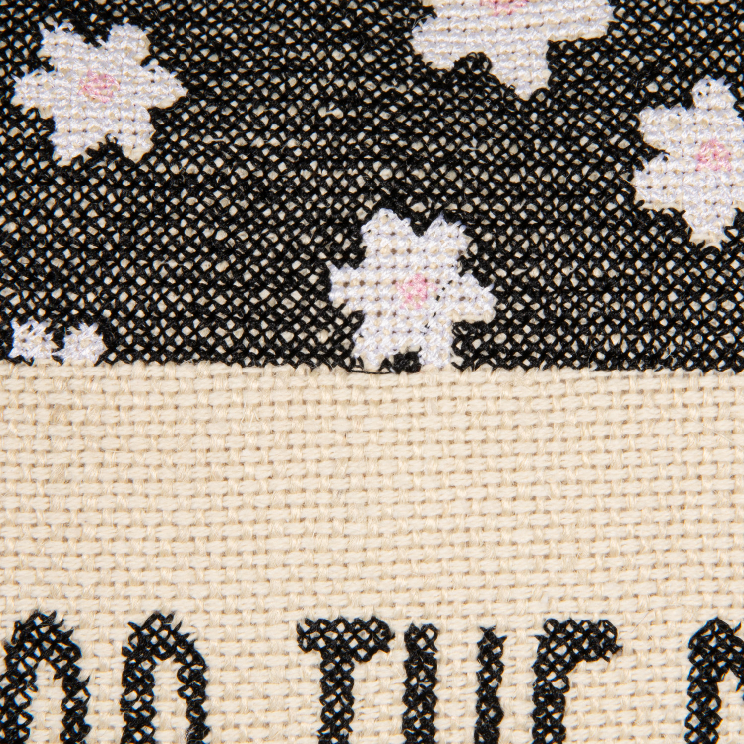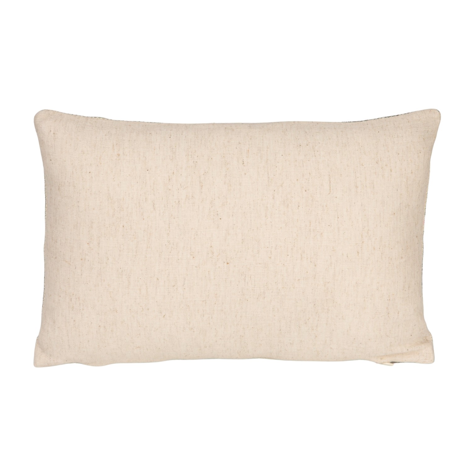 Cotton & Jute Embroidered Lumbar Pillow with Flower Pattern
