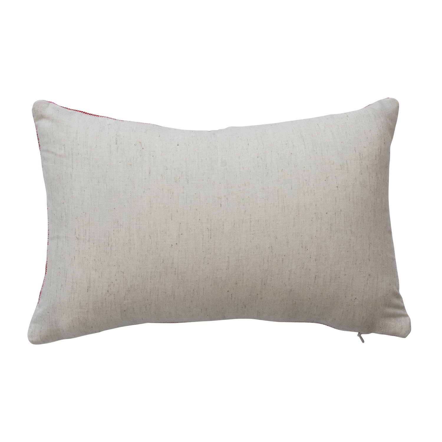 Cotton Velvet Embroidered Lumbar Pillow with Geometric Pattern