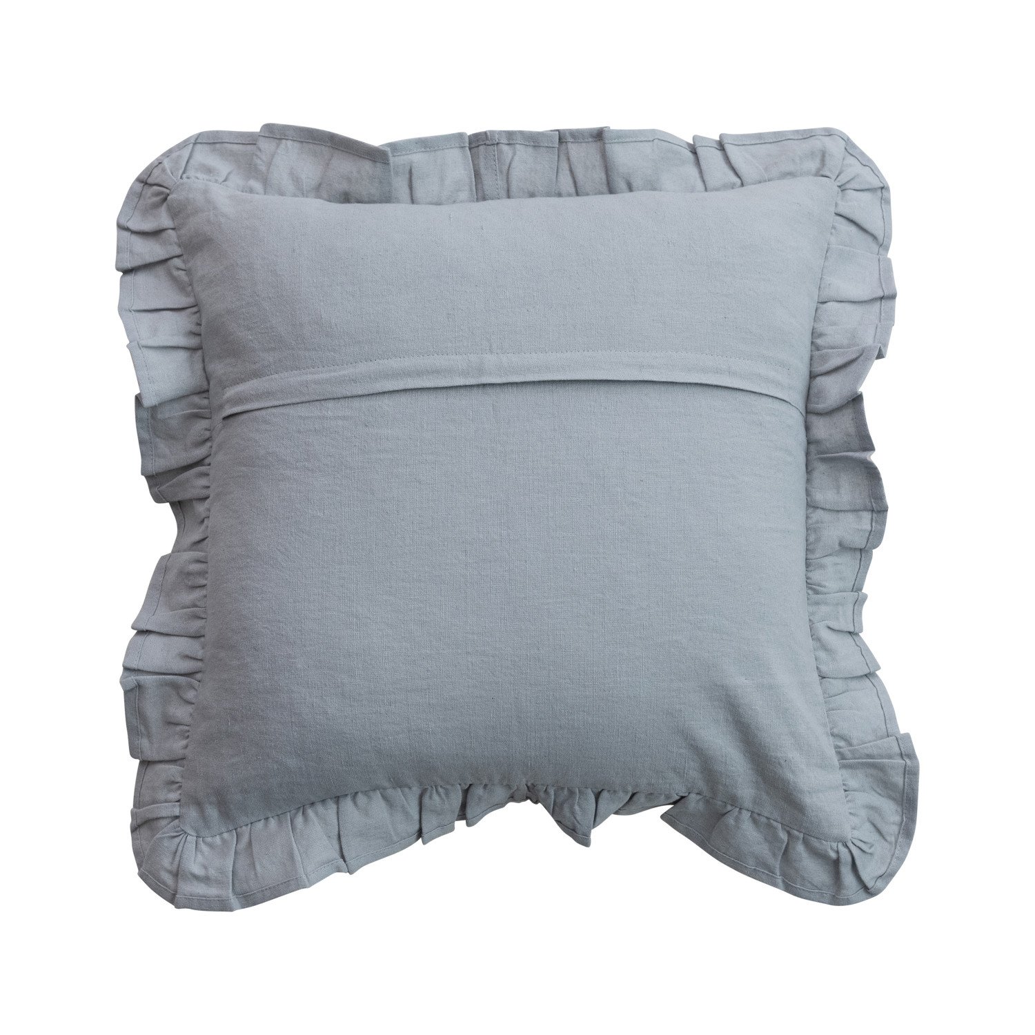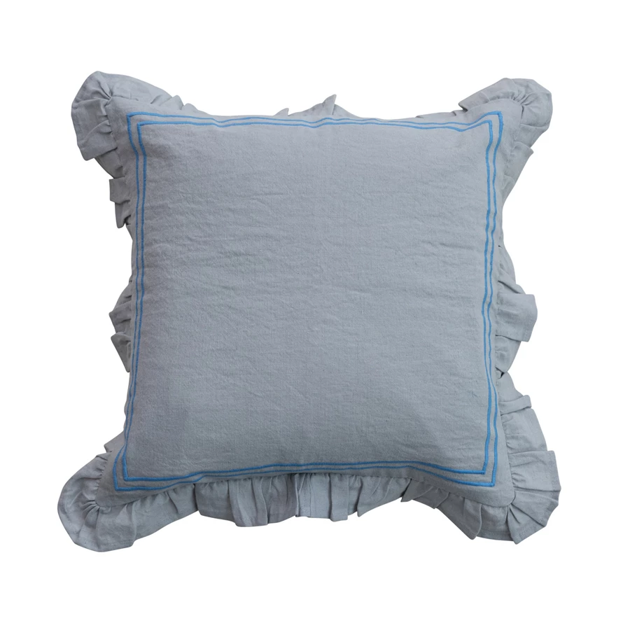 Catalog Name: 18" Square Cotton & Linen Pillow w/ Embroidered Stripes & Ruffle, Blue