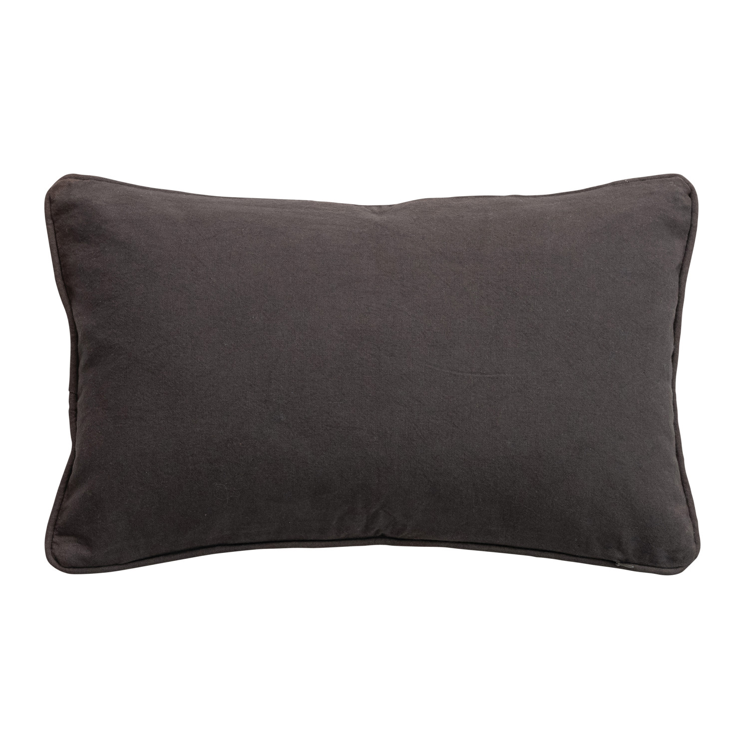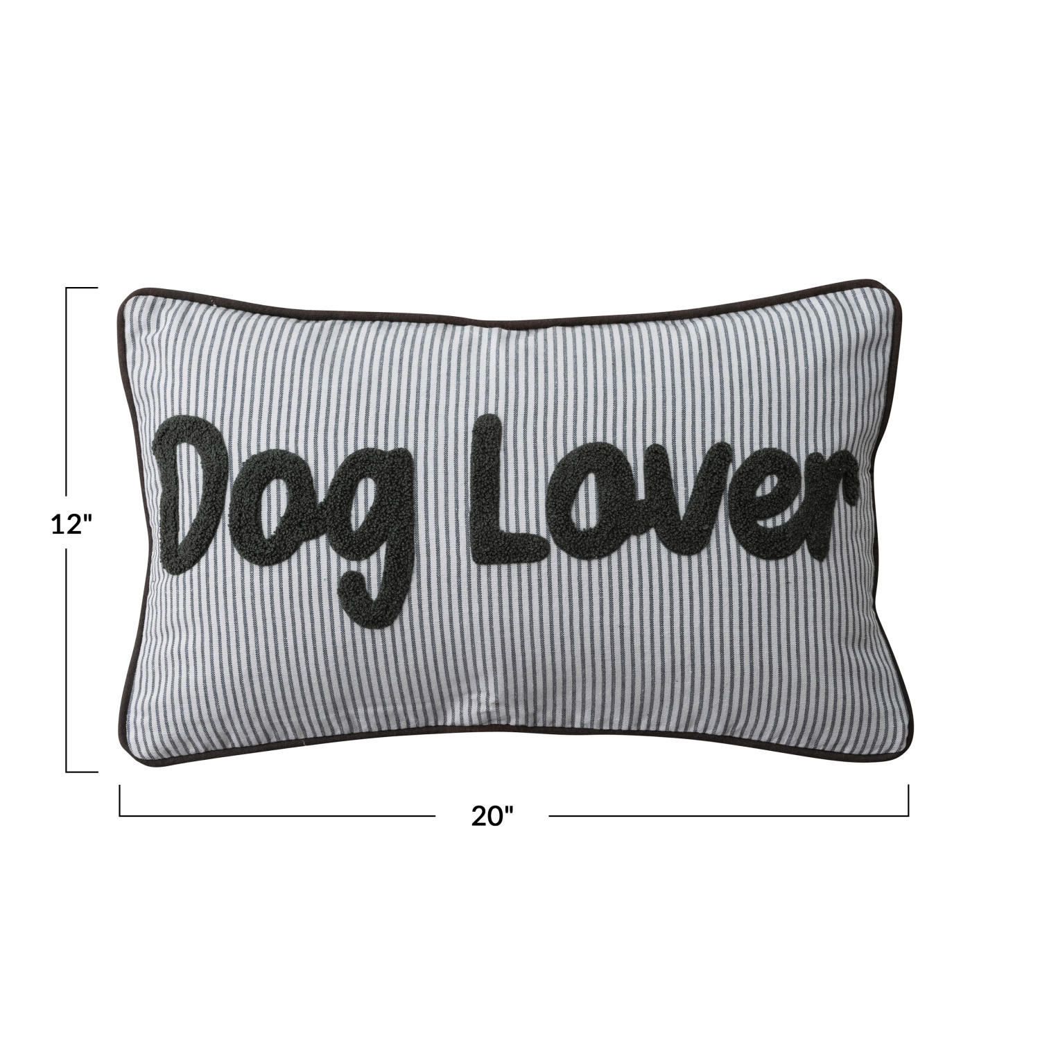 Catalog Name: 20"L x 12"H Cotton Blend Printed Striped Lumbar Pillow w/ Piping & Tufted "Dog Lover", Grey & Cream Color
