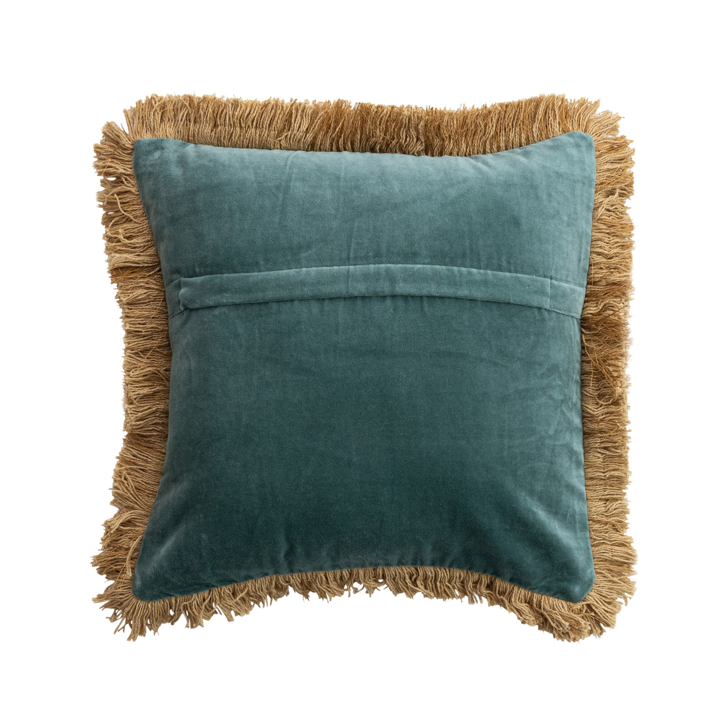 Fabric Blend Jacquard Printed Pillow w/ Brocade Pattern, Eyelash Fringe & Velvet Back