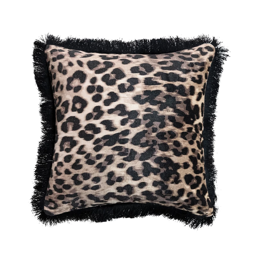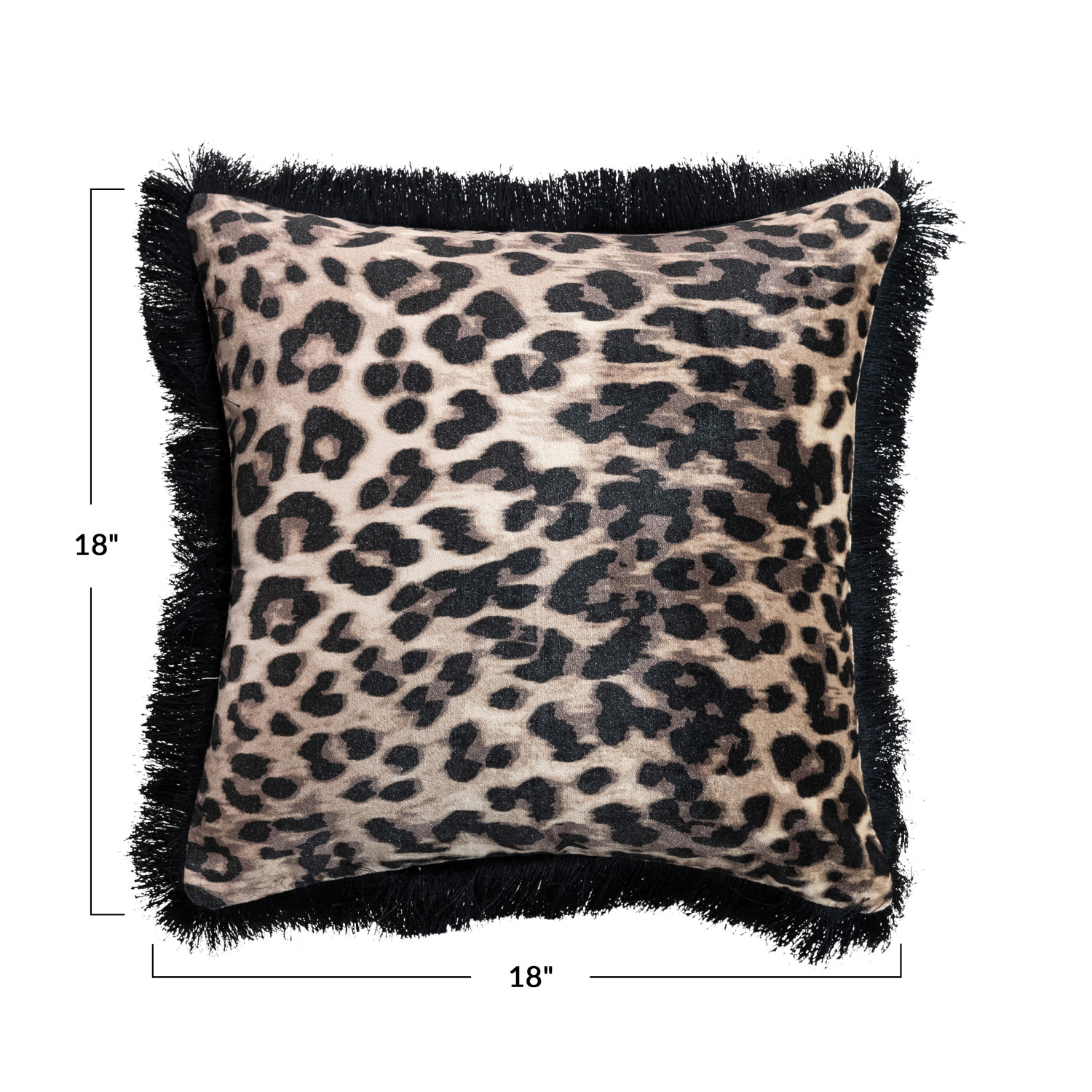 Cotton Velvet Printed Pillow w/ Leopard Print & Fringe
