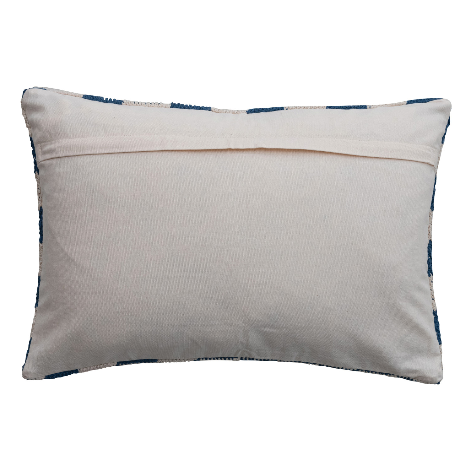 Cotton Crocheted Check Lumbar Pillow w/ Embroidered "Good Vibes"