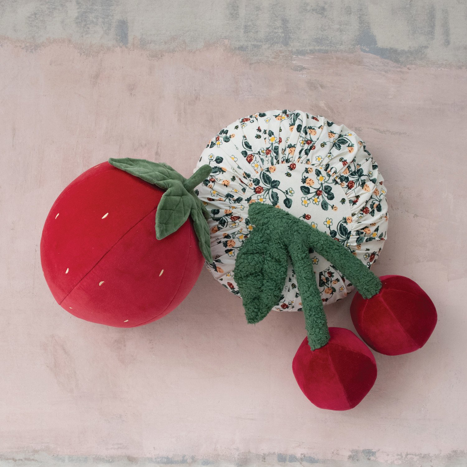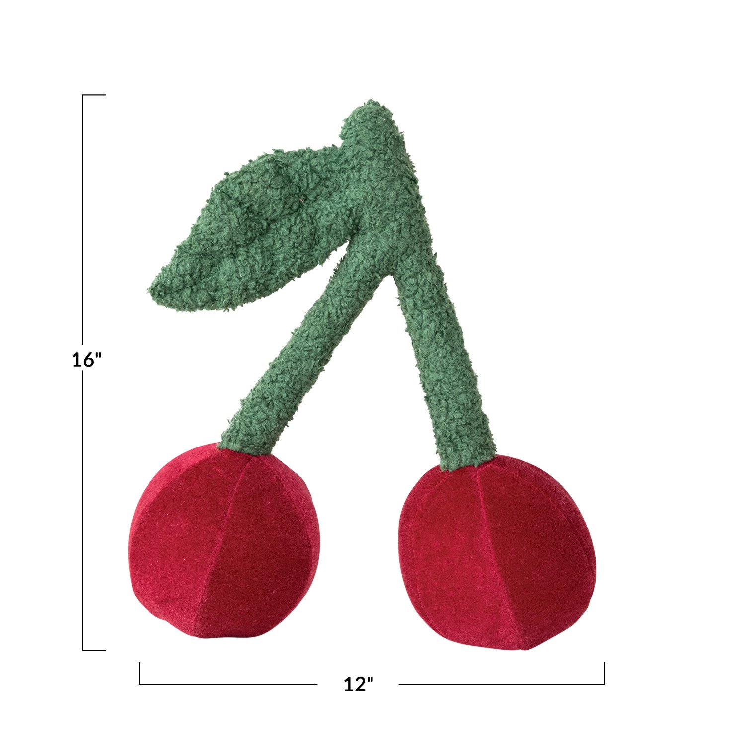 Cotton Velvet Cherry Shaped Pillow w/ Faux Sherpa Stem, Red & Green