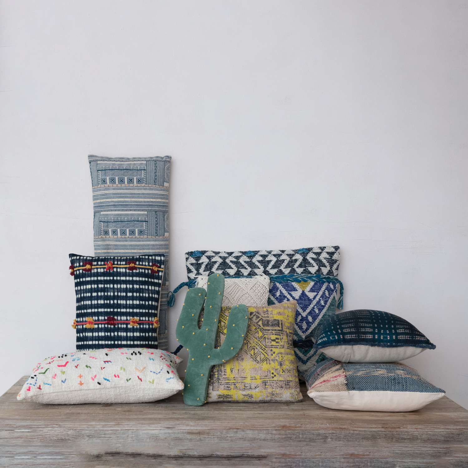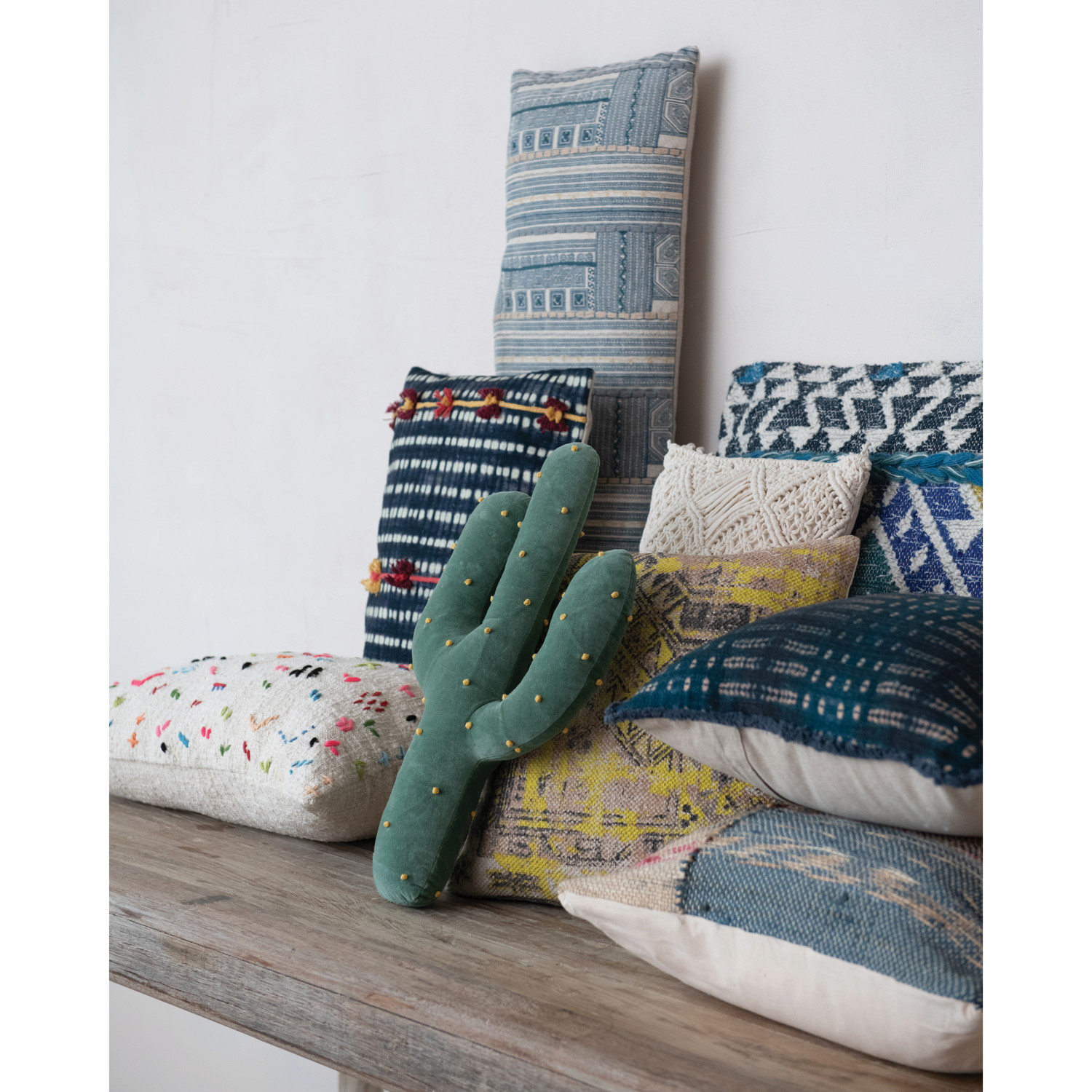 Cotton Slub Lumbar Pillow w/ Hand-Embroidery