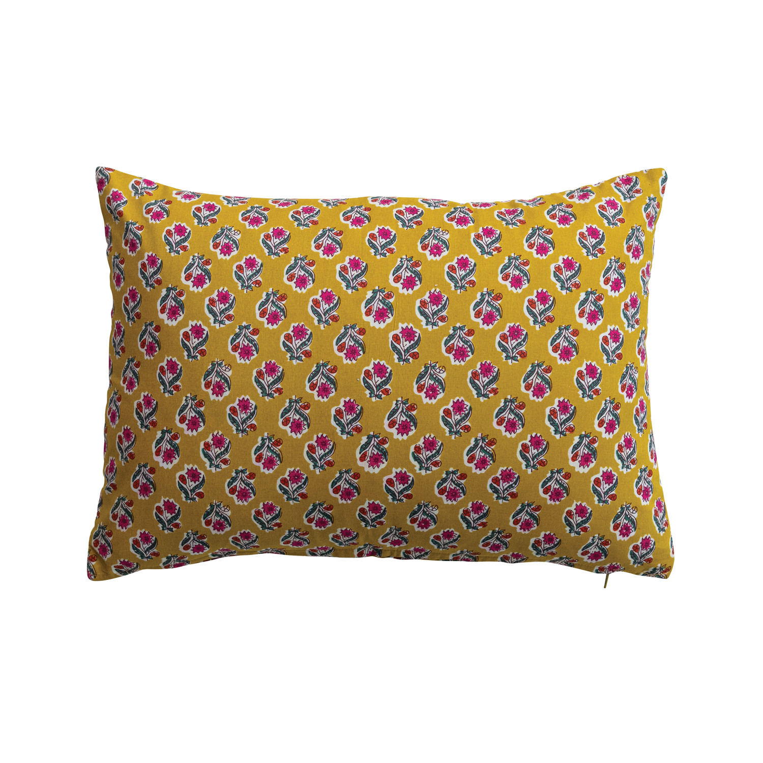 Catalog Name: 20"L x 14"H Cotton Voile Printed Lumbar Pillow w/ Floral Pattern & Embroidery "Couch Club", Multi Color