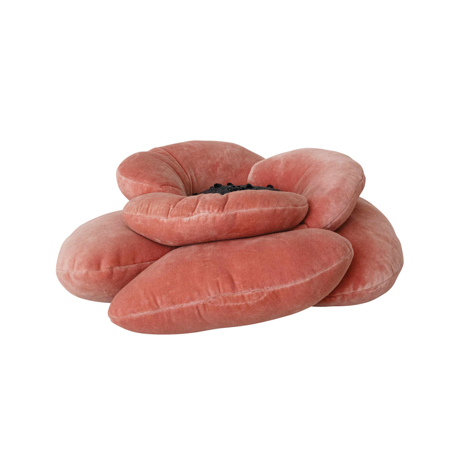 Catalog Name: 16" Round Cotton Velvet 3D Flower Shaped Pillow w/ Beads, Peach Color & Brown