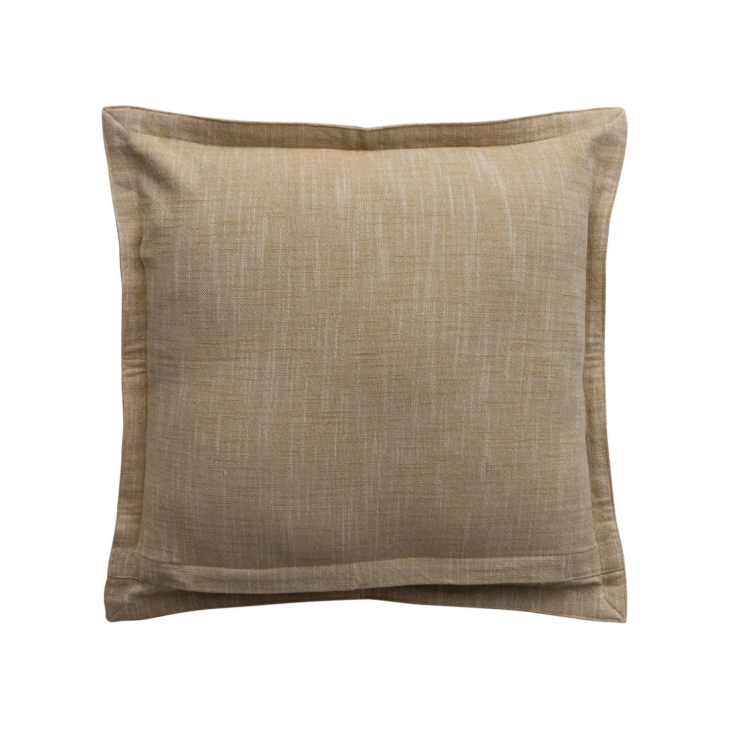 18" Square Woven Cotton Pillow with Striped Flange Edge