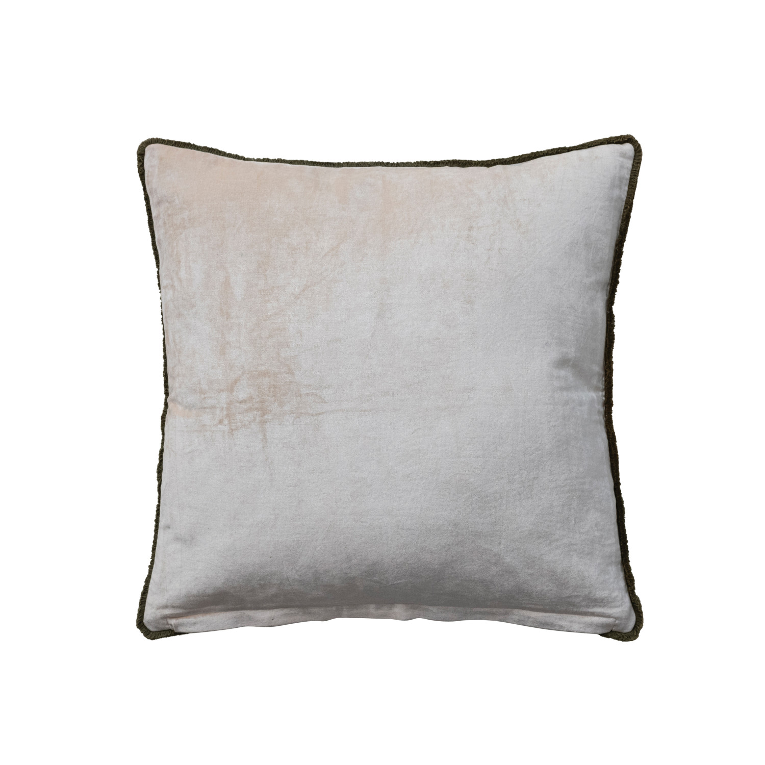 20" Square Cotton Velvet Pillow with Safari Animals, Botanicals & Tufted Fringe