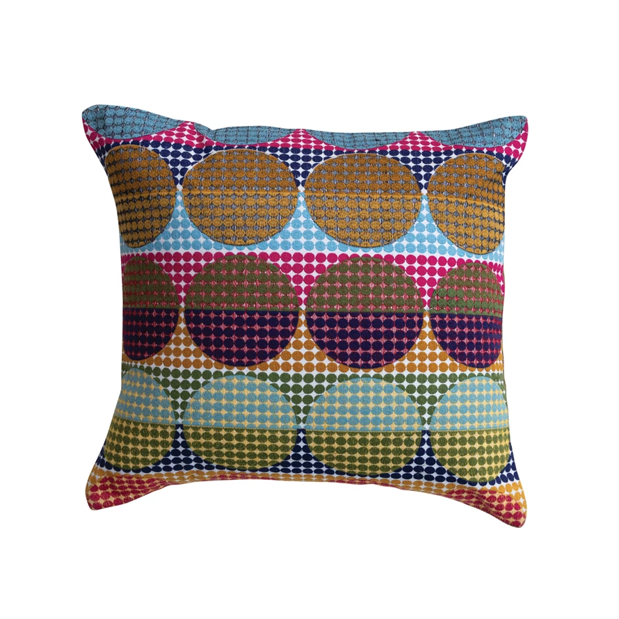 Catalog Name: 18" Square Woven Fabric Indoor/Outdoor Pillow w/ Embroidered Geometric Pattern, Multi Color