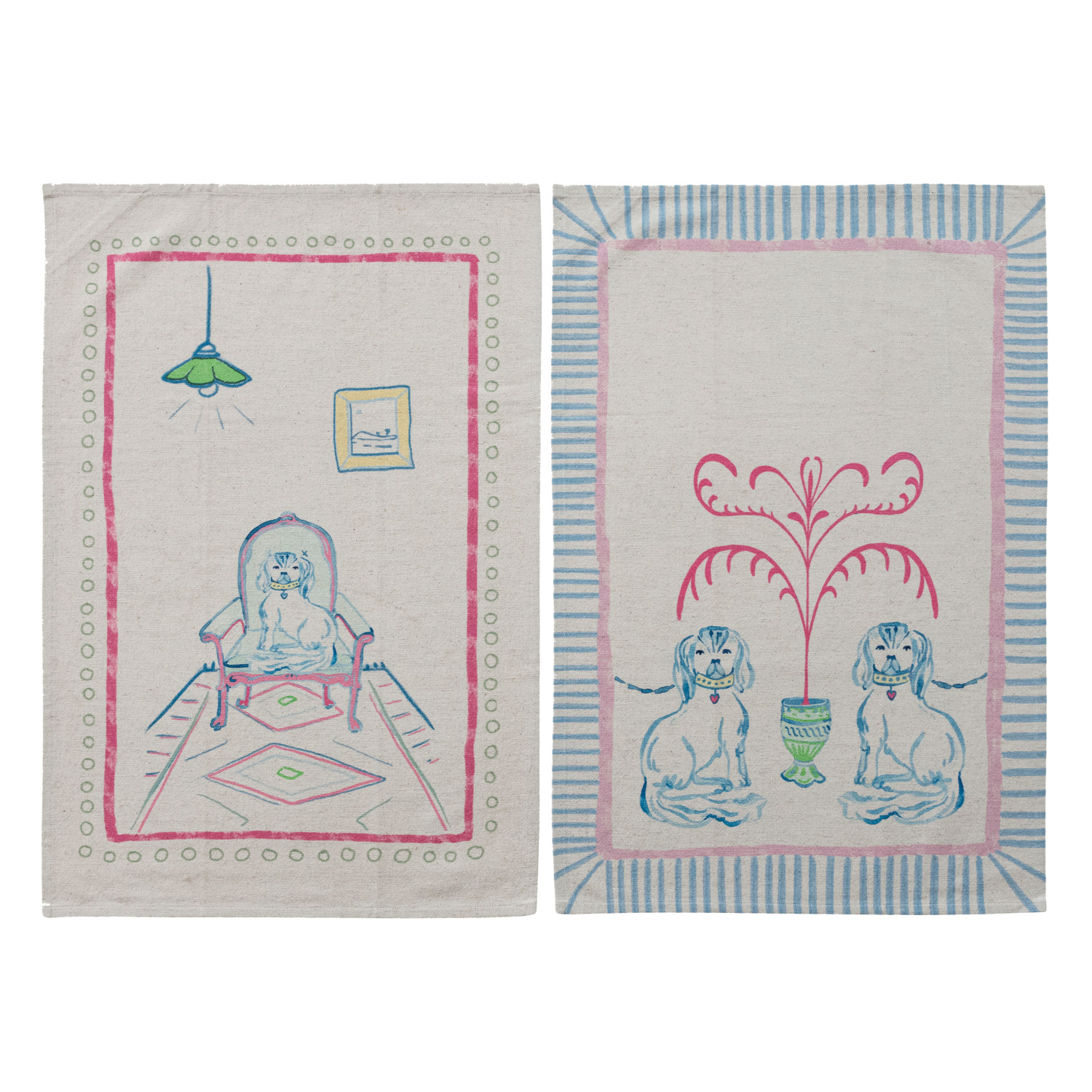 Cotton & Linen Tea Towel with Staffordshire Dog Scene, 2 Styles
