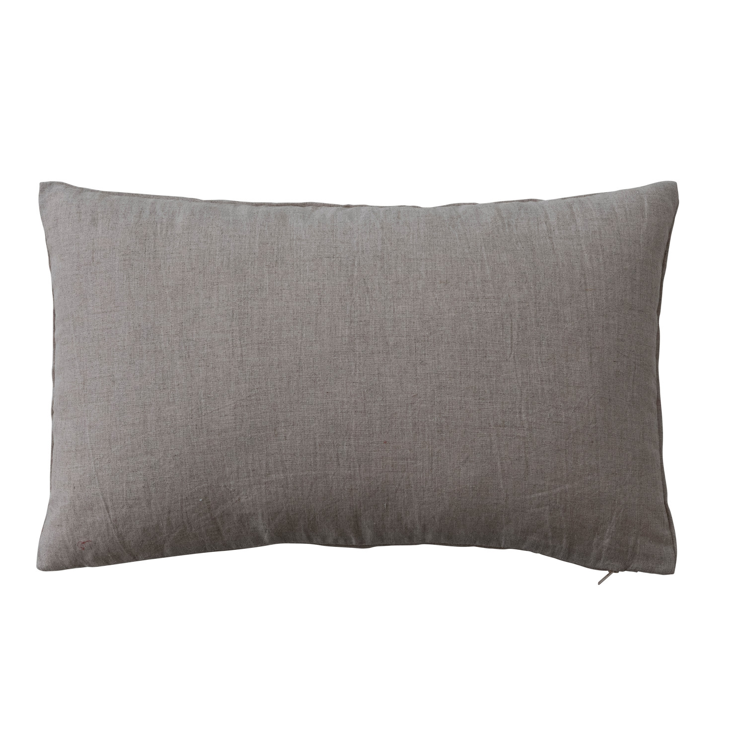 Catalog Name: 20"L x 12"H Linen Lumbar Pillow w/ Embroidered Clover "How Lucky We Are", Natural, Black & Green