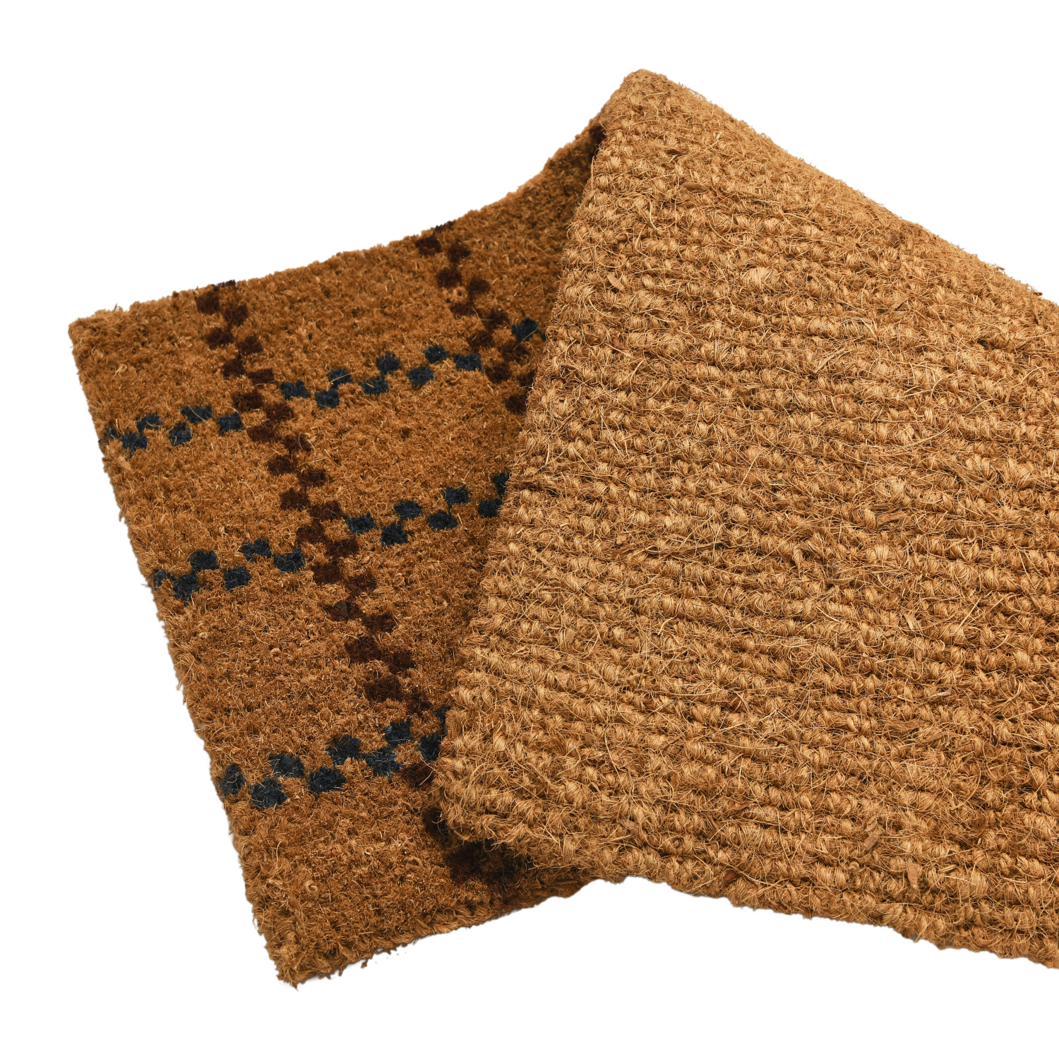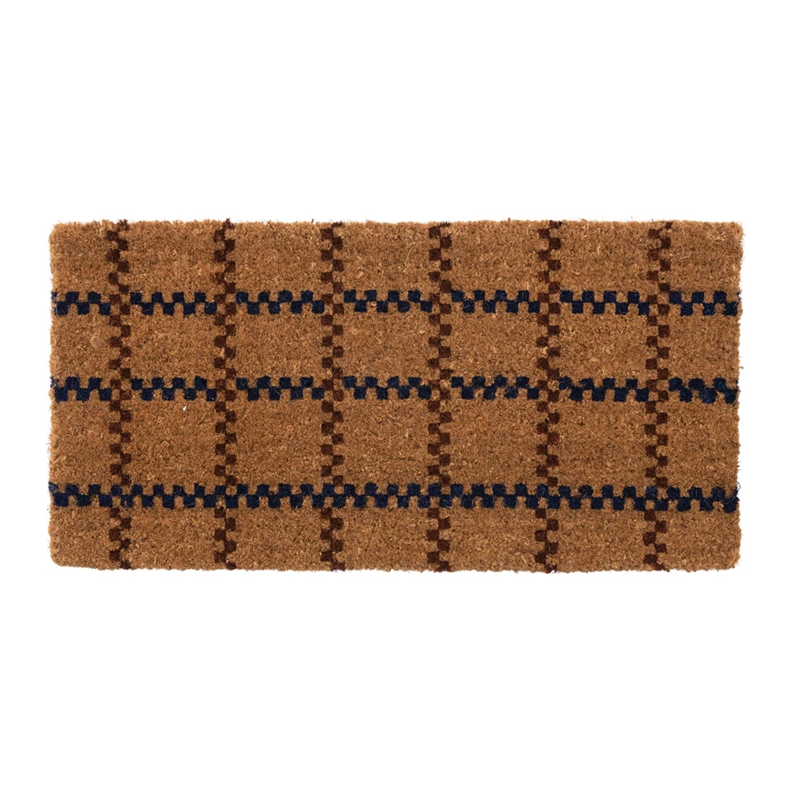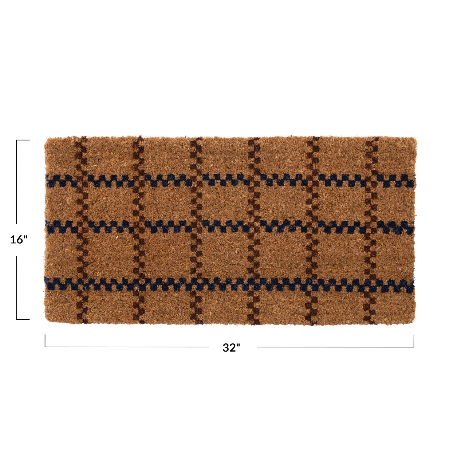 Catalog Name: 32"L x 16"W Natural Coir Doormat, Navy Color & Brown Plaid