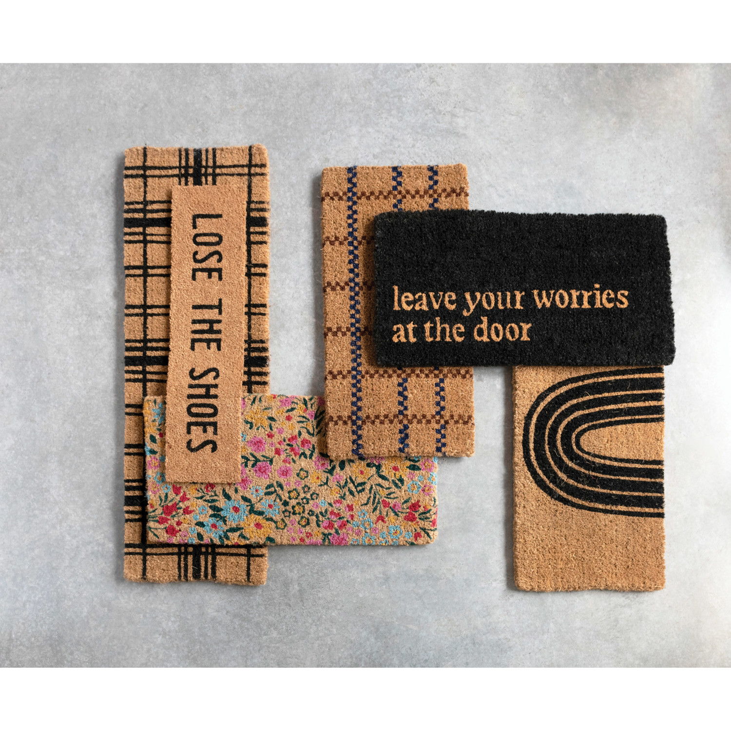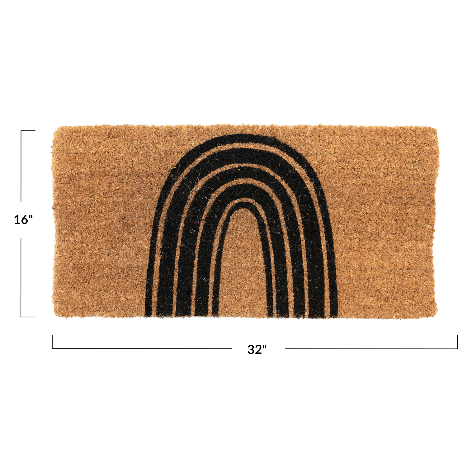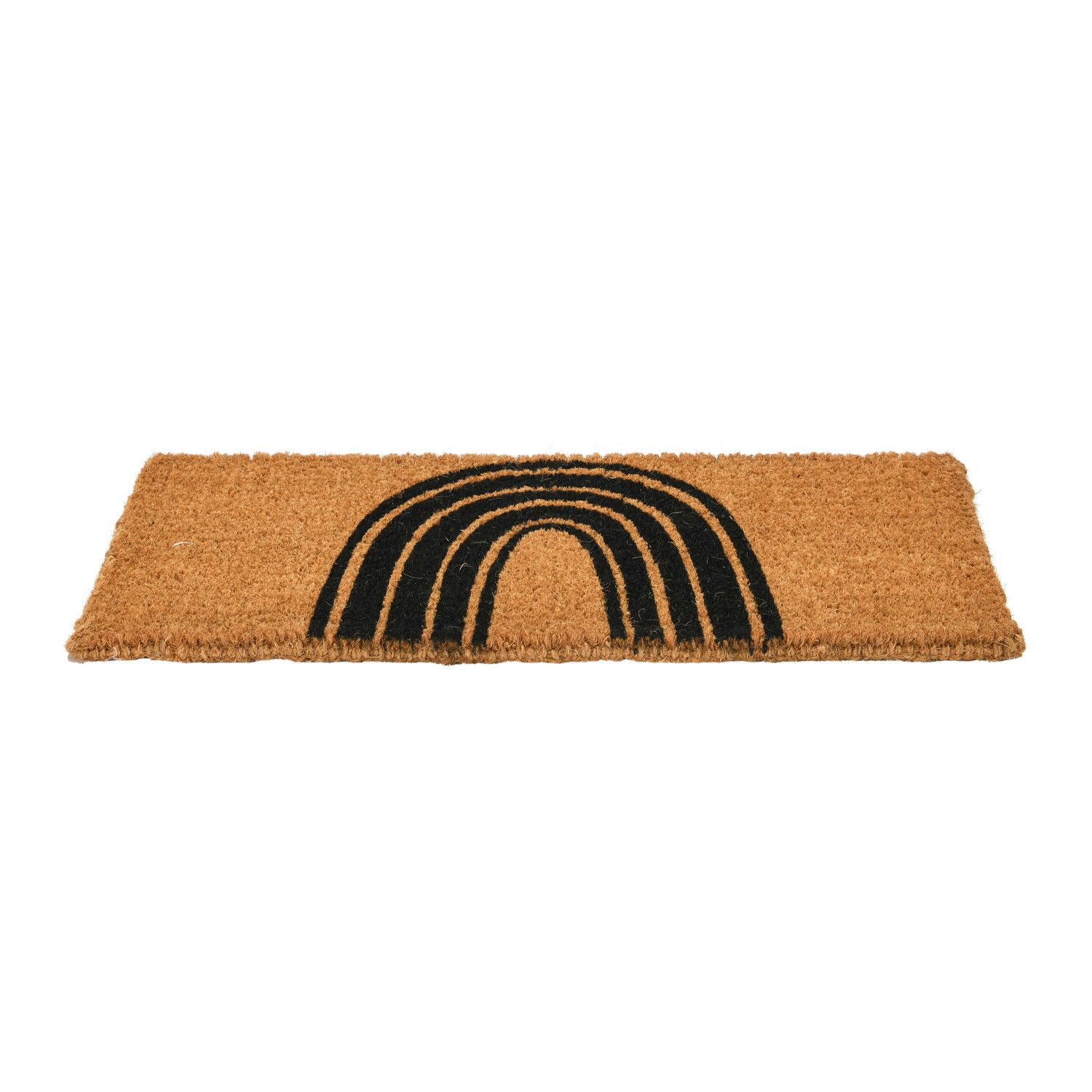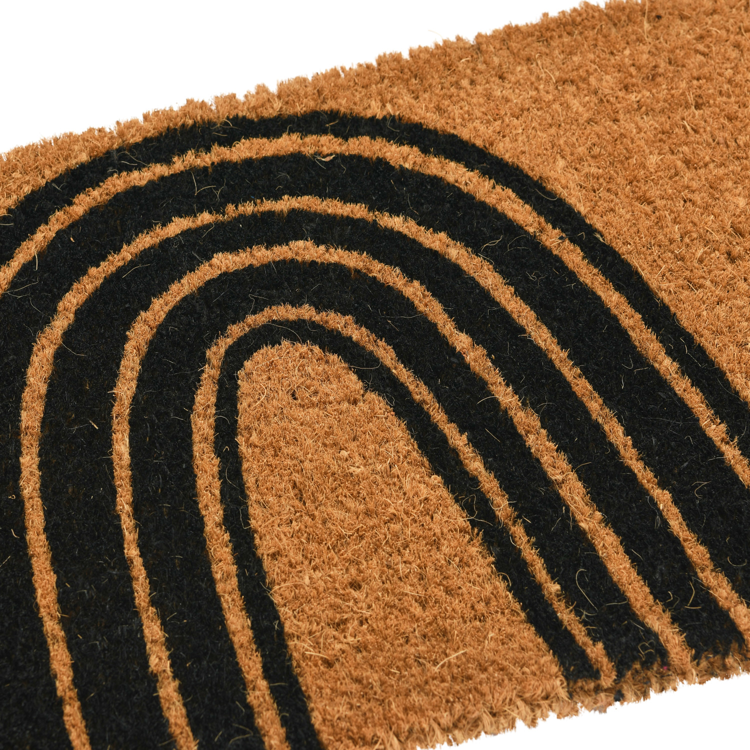 This minimalist doormat features natural coir with a contemporary rainbow design. Natural coir doormat with modern black rainbow design. Display this minimalist doormat in an entryway to effortlessly set the tone for any modern interior design. Made from 100% natural coir.