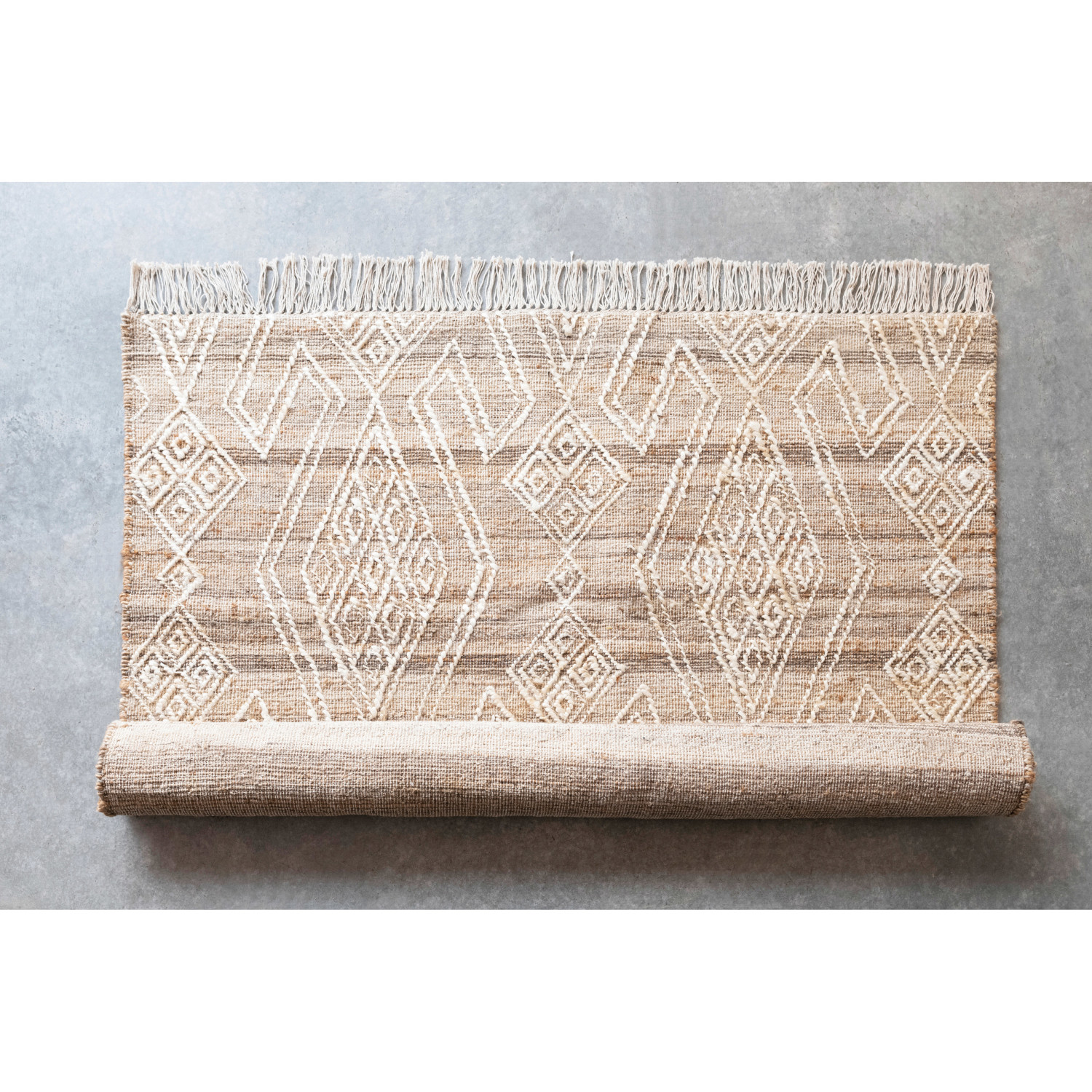 Hand-Woven Jute and Wool Blend Rug with Pattern and Fringe