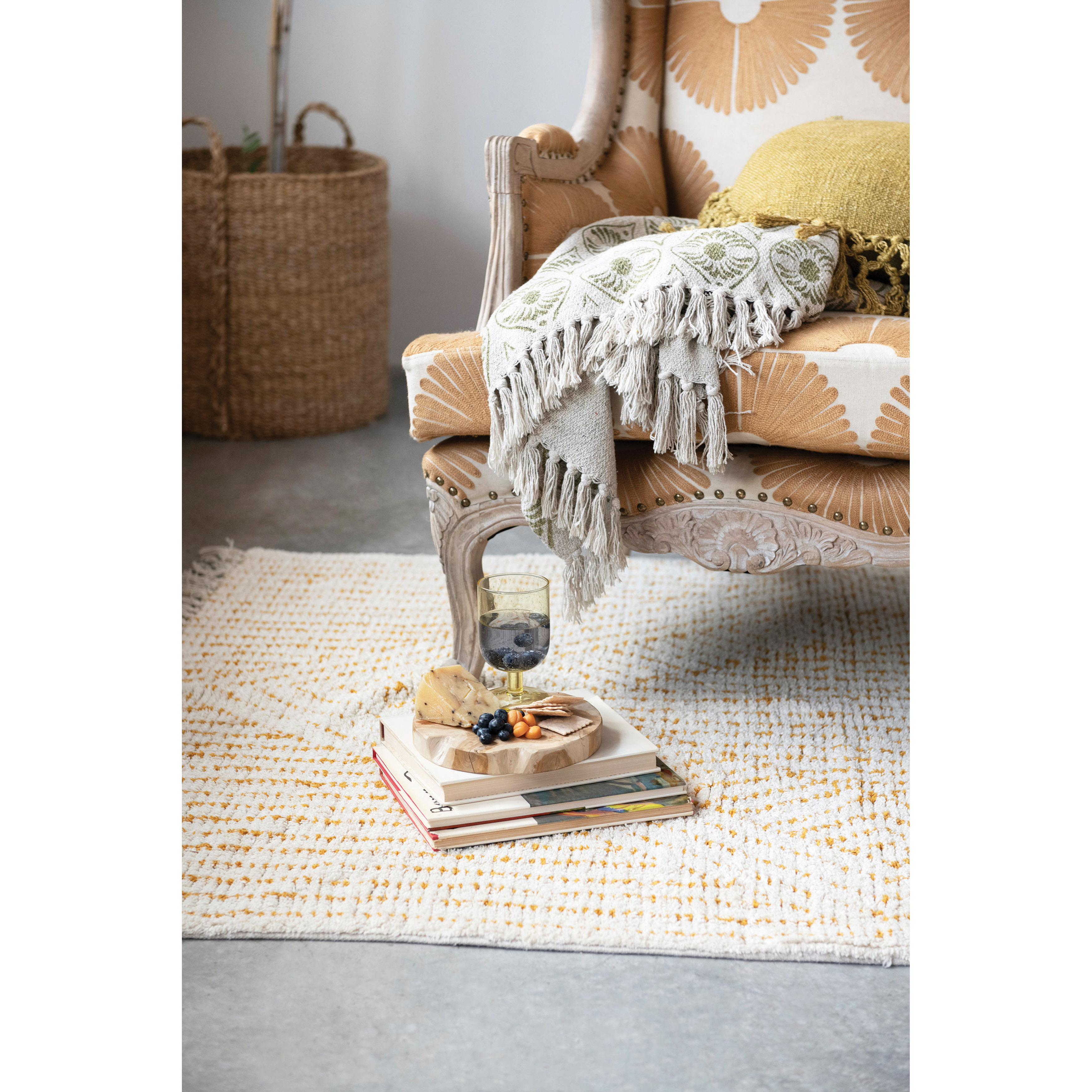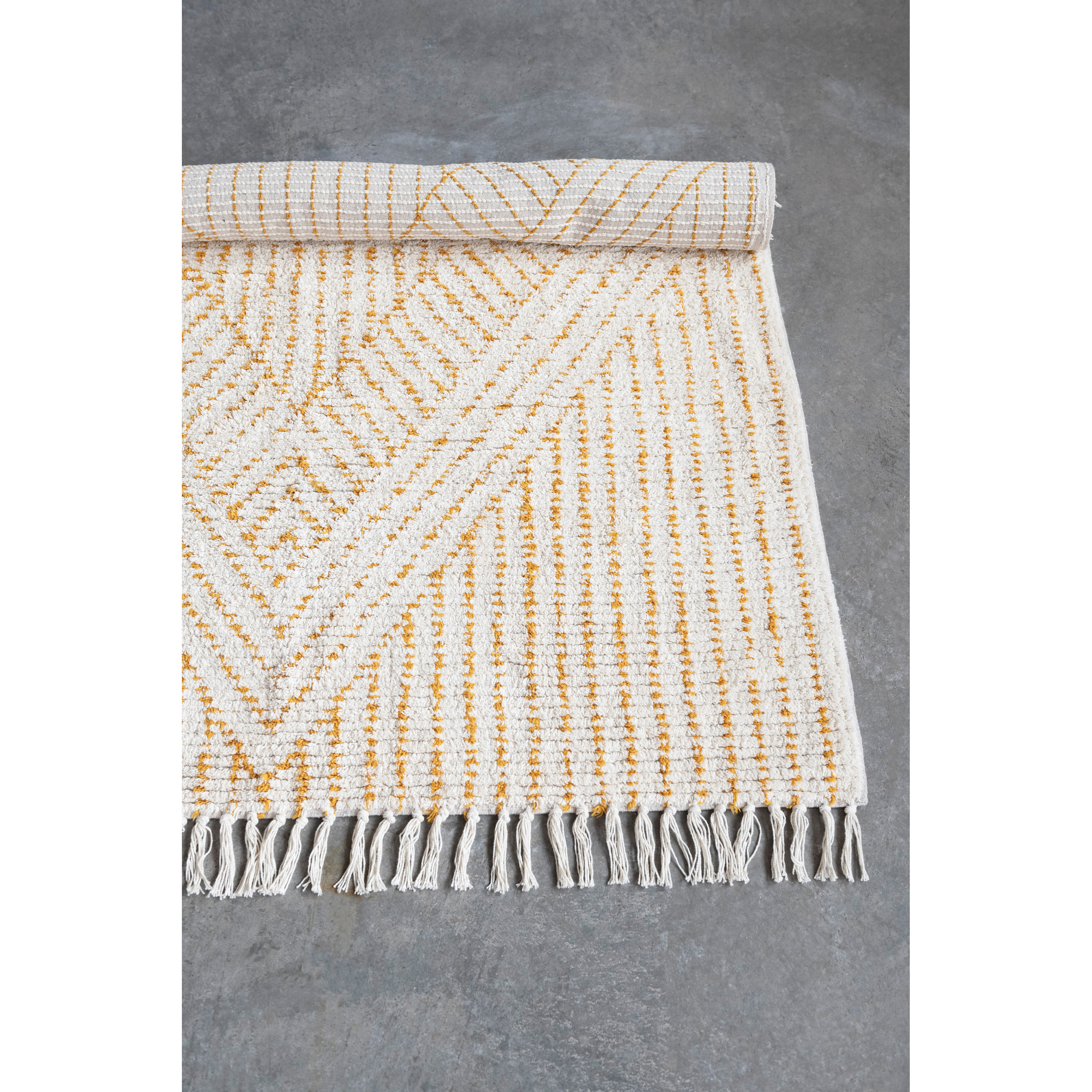 Catalog Name: 4' x 6' Stonewashed Cotton Tufted Rug w/ Diamond, Stripes & Fringe, Ivory & Mustard Color