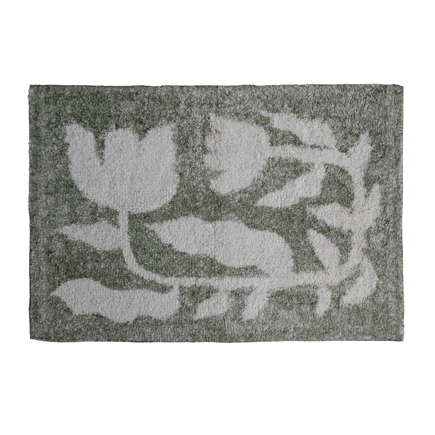 Catalog Name: 2' x 3' Cotton Tufted Rug w/ Flowers, Sage Color & White