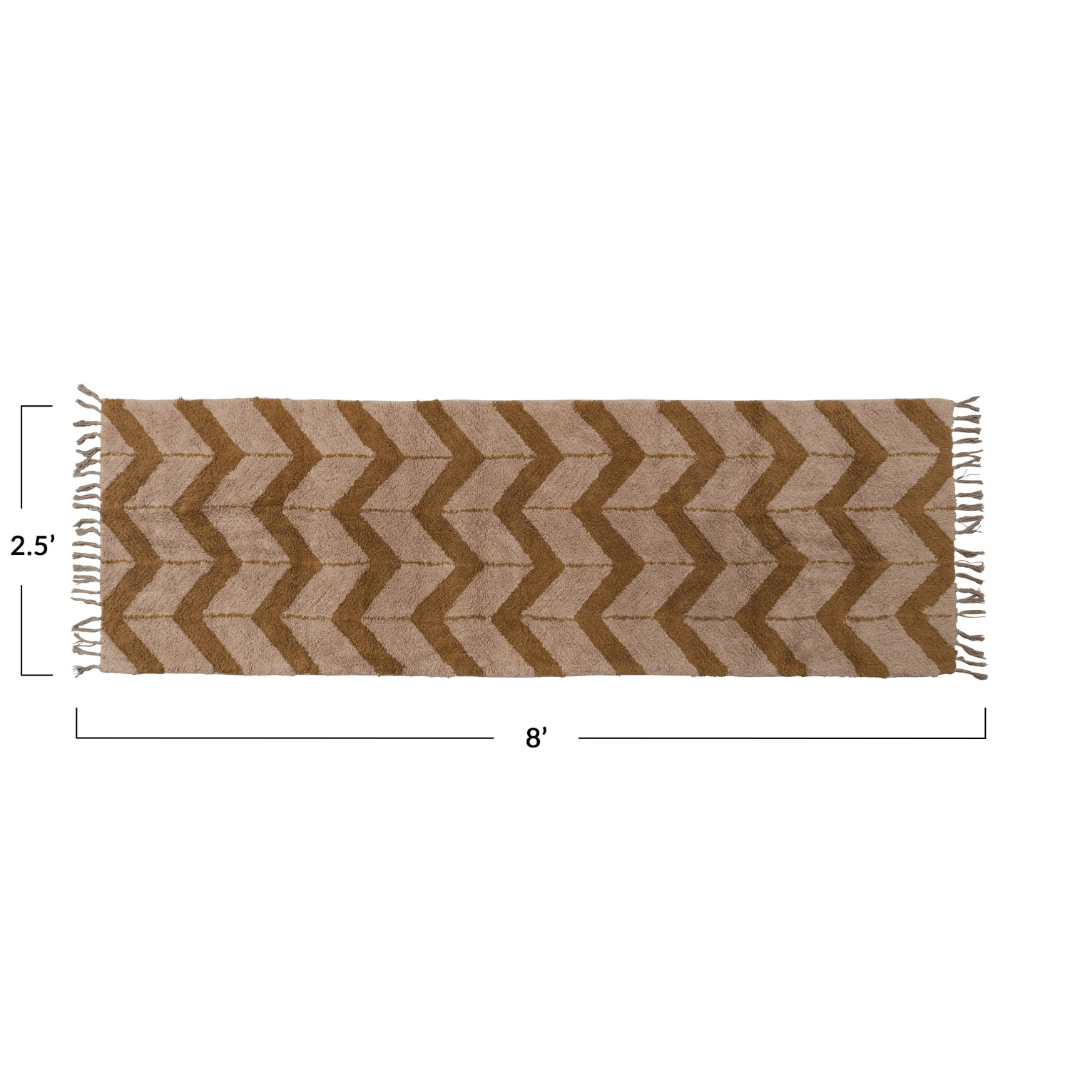 Cotton Tufted Floor Runner w/ Chevron Pattern & Fringe