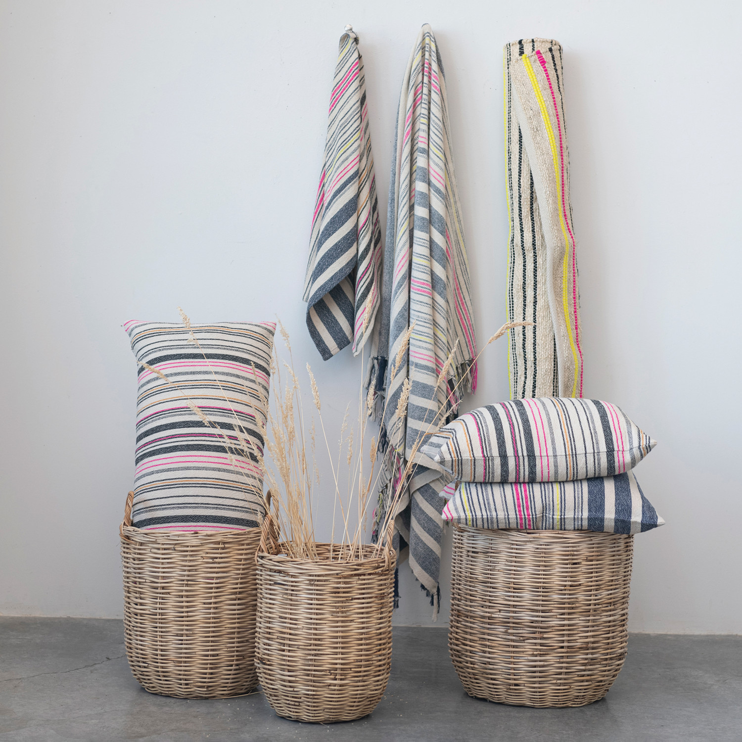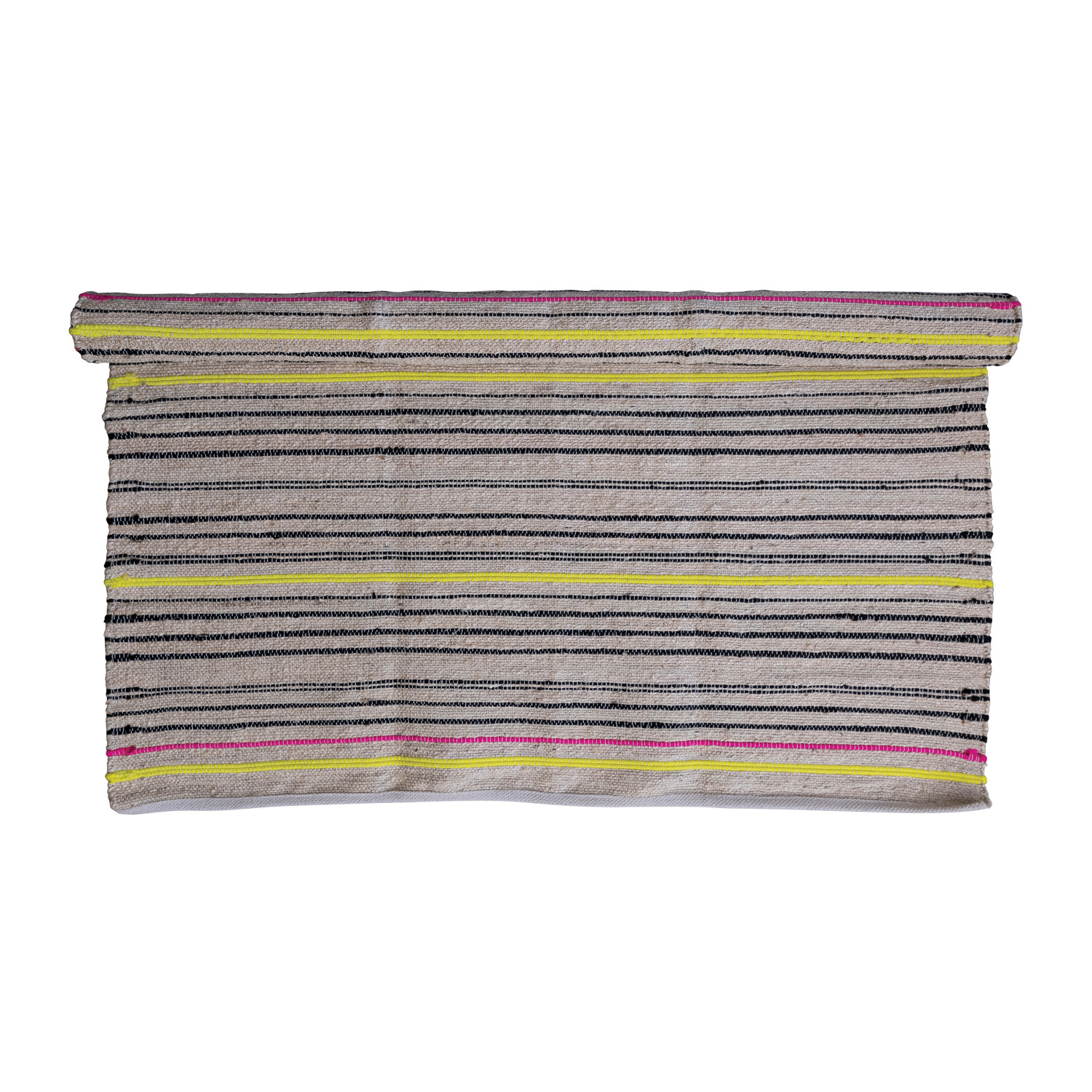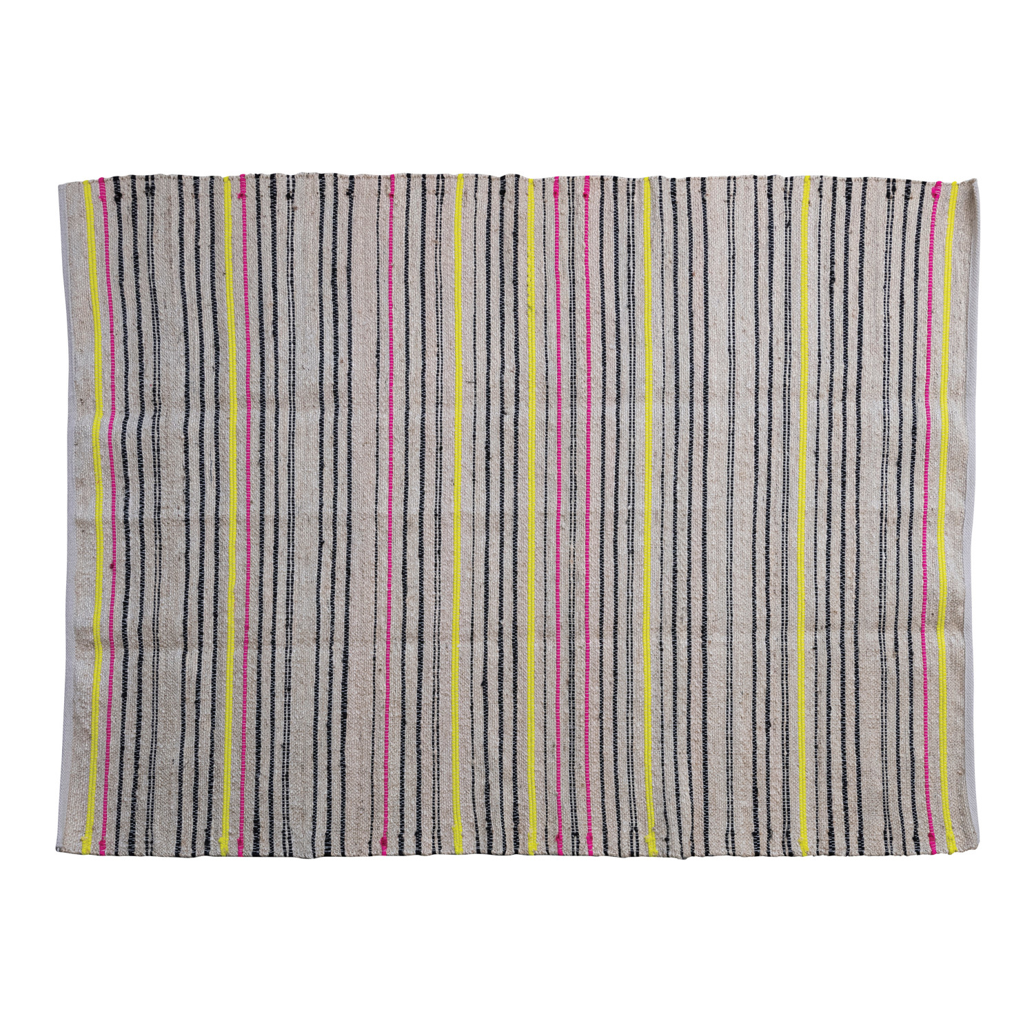 Our thoughtfully curated collection of rugs showcases a wide array of lush woven textures, prints, embroidery, and silhouettes to instantly transform any space. Explore a wide variety of pieces to bring warmth to any space including doormats, patchwork, dhurrie rugs, circle rugs, tufted area rugs, floor runner rugs, and so much more. Choose from vast selection of materials from pieced leather and jute to handwoven cotton and wool, and styles from mid-century modern and global to contemporary boho and traditional farmhouse. Effortlessly bring depth, warmth, and texture to a living space with a thoughtfully placed rug that is sure to impress. This whimsical floor rug features intricately woven jute and cotton in a multicolor stripe design. Display in a living or dining space of any style from cottage to farmhouse. Spot Clean Only. Made from jute.