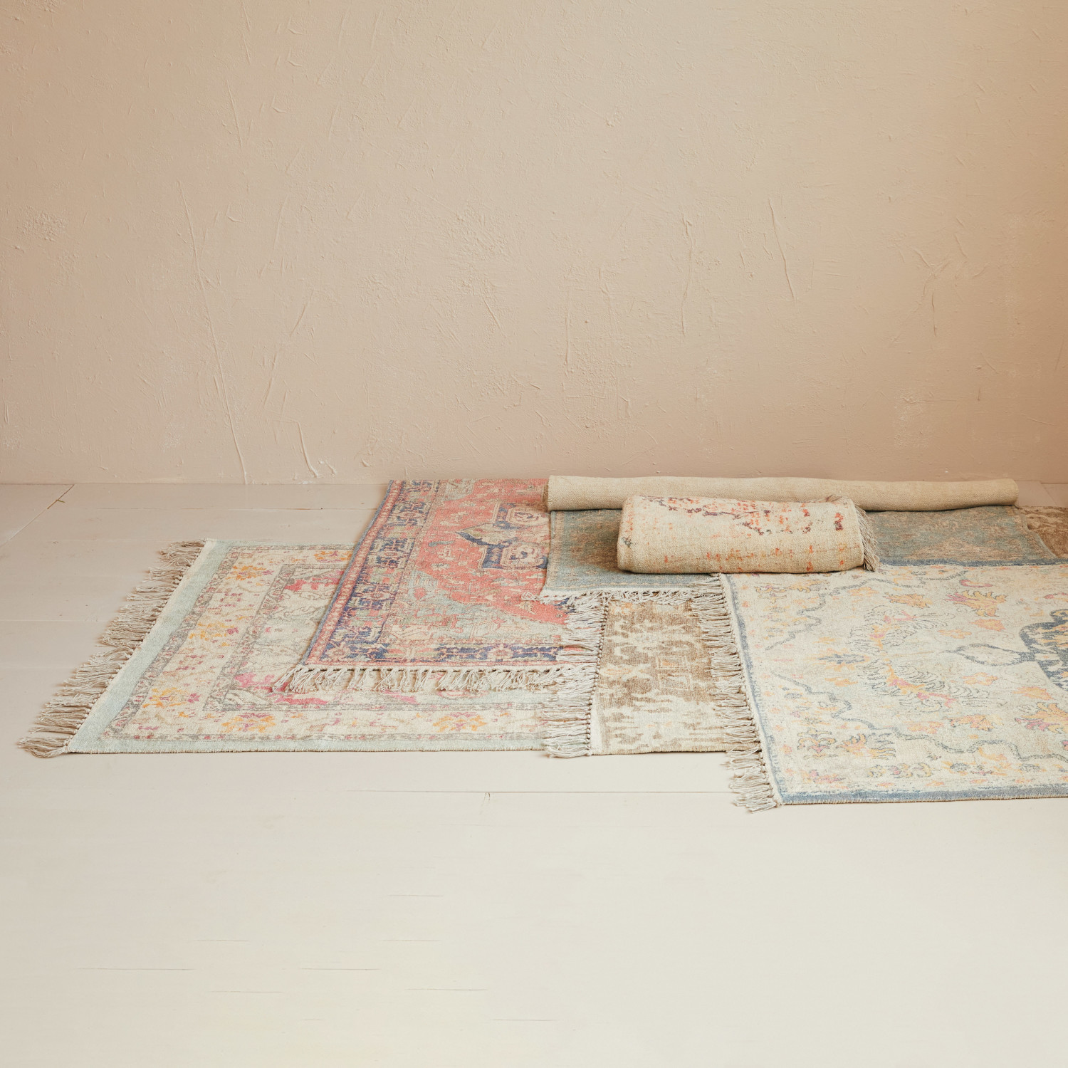 Catalog Name: 5' x 7' Cotton Chenille Distressed Print Rug w/ Fringe, Multi Color