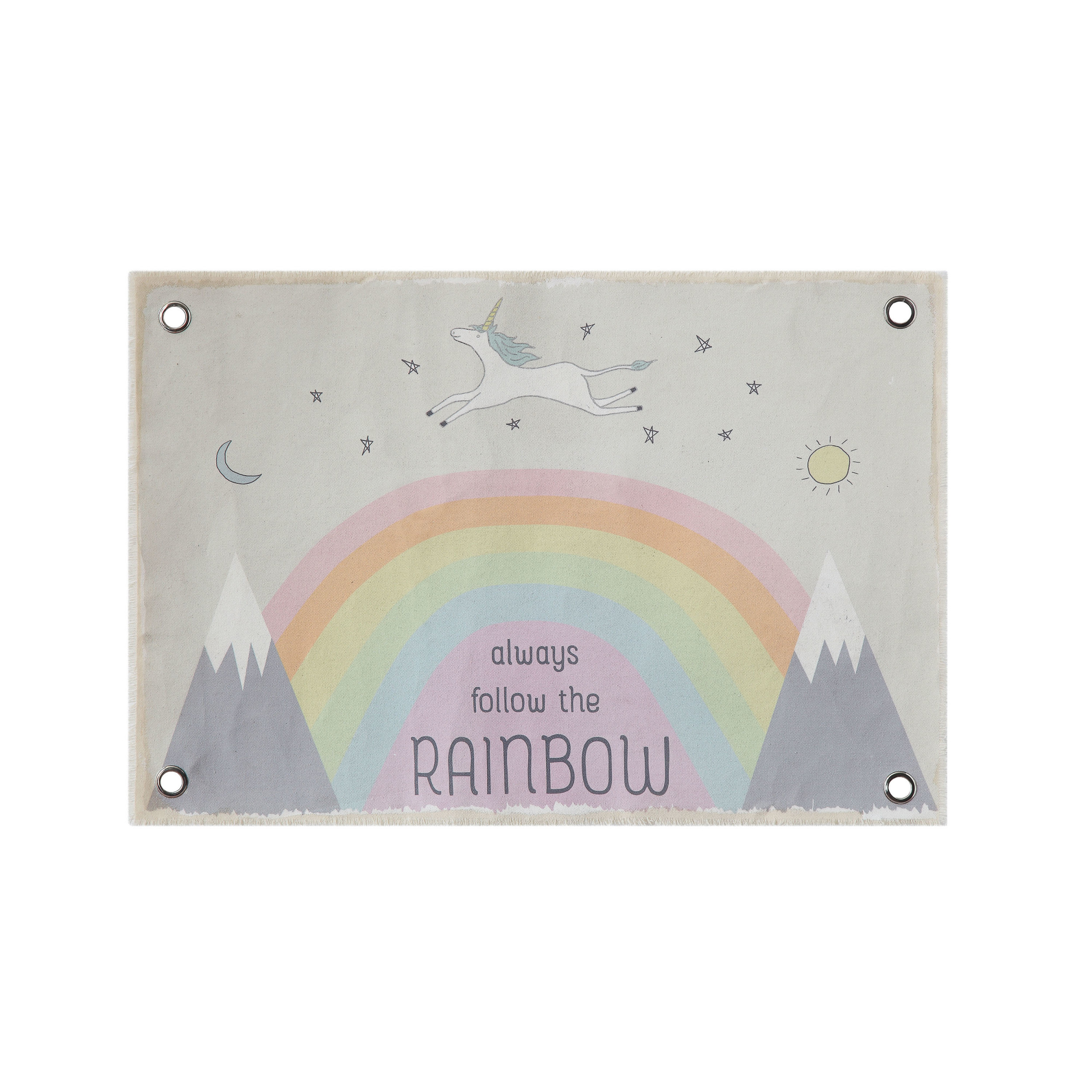 Catalog Name: 26"W x 17-3/4"H Canvas Wall Décor w/ Rainbow & Grommets "Always Follow the Rainbow"