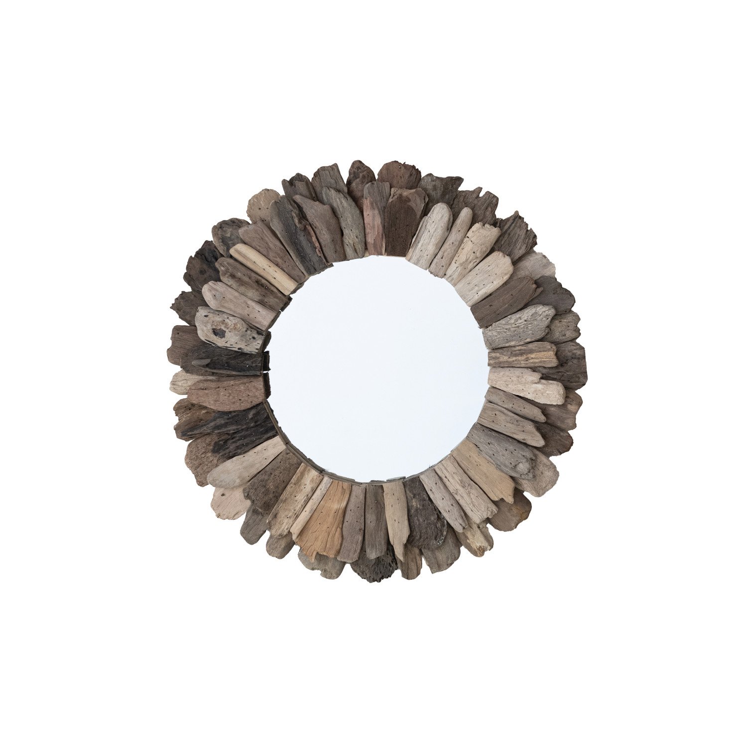 Catalog Name: 20" Round Handmade Layered Driftwood Framed Mirror, Natural (Each One Will Vary)