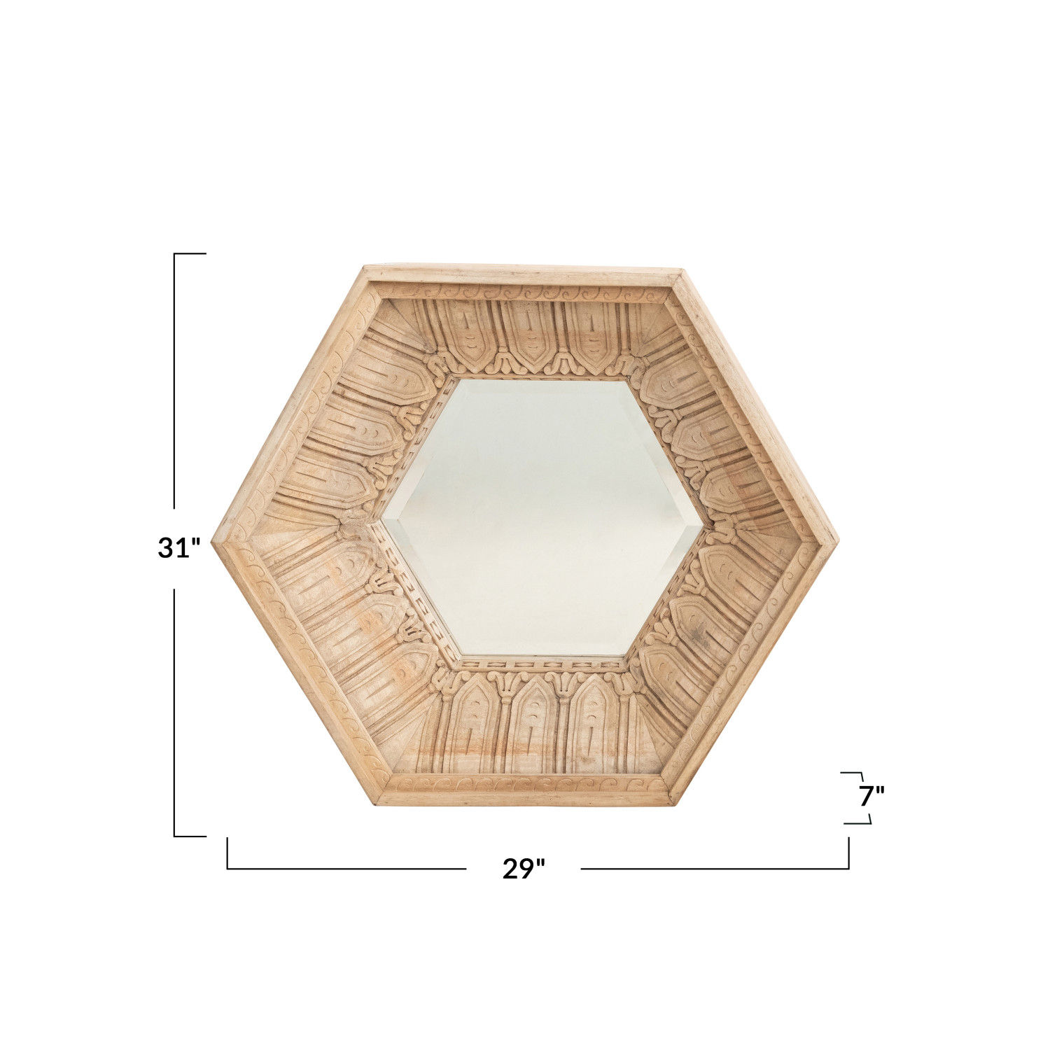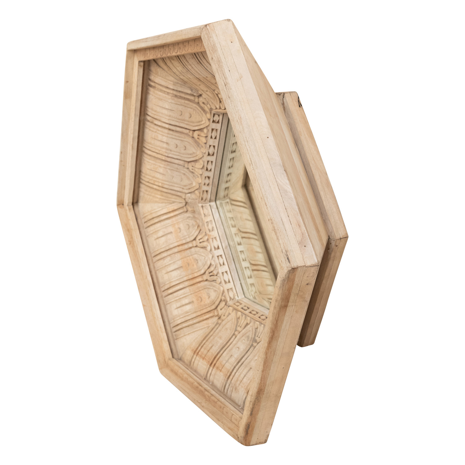 Hand-Carved Deep Framed Mango Wood Vintage Reproduction Hexagon Shaped Beveled Wall Mirror