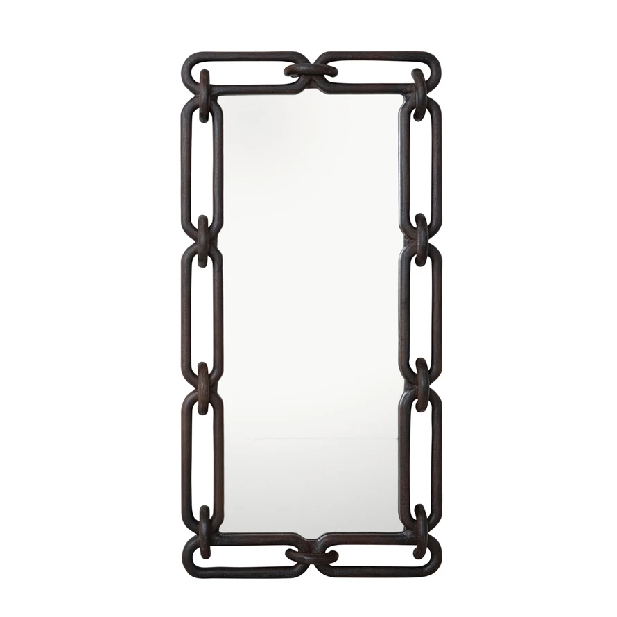 Reclaimed Wood Chain Link Framed Wall Mirror (Hangs Vertically & Horizontally)