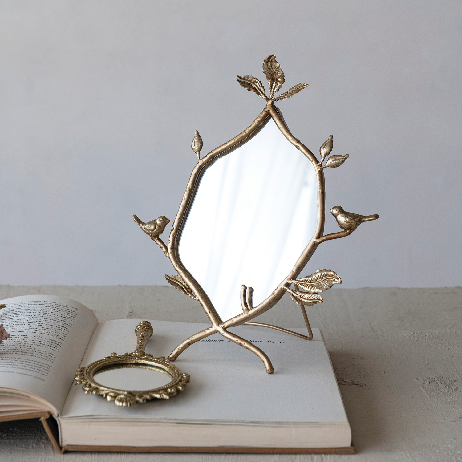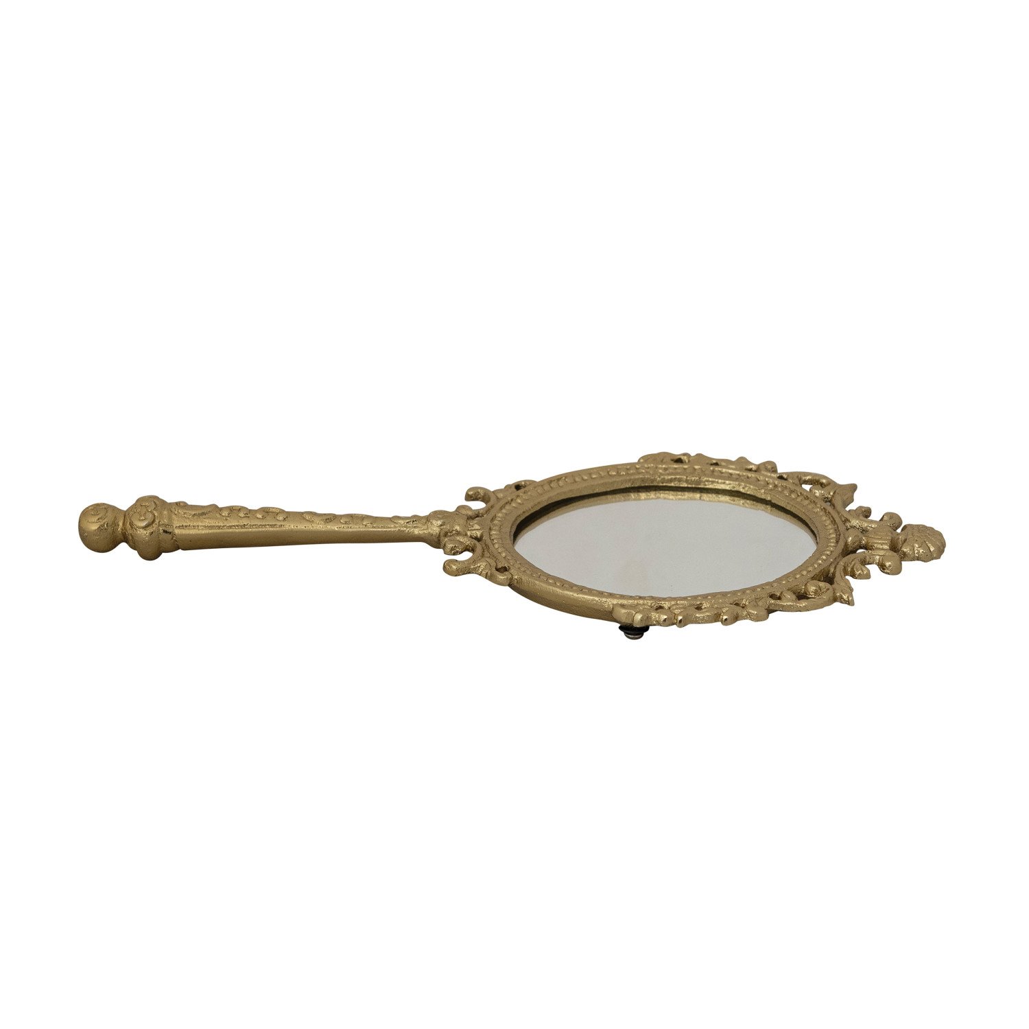 Catalog Name: 10-1/4"L x 4-1/4"W Embossed Metal Framed Hand Mirror, Antique Gold Finish