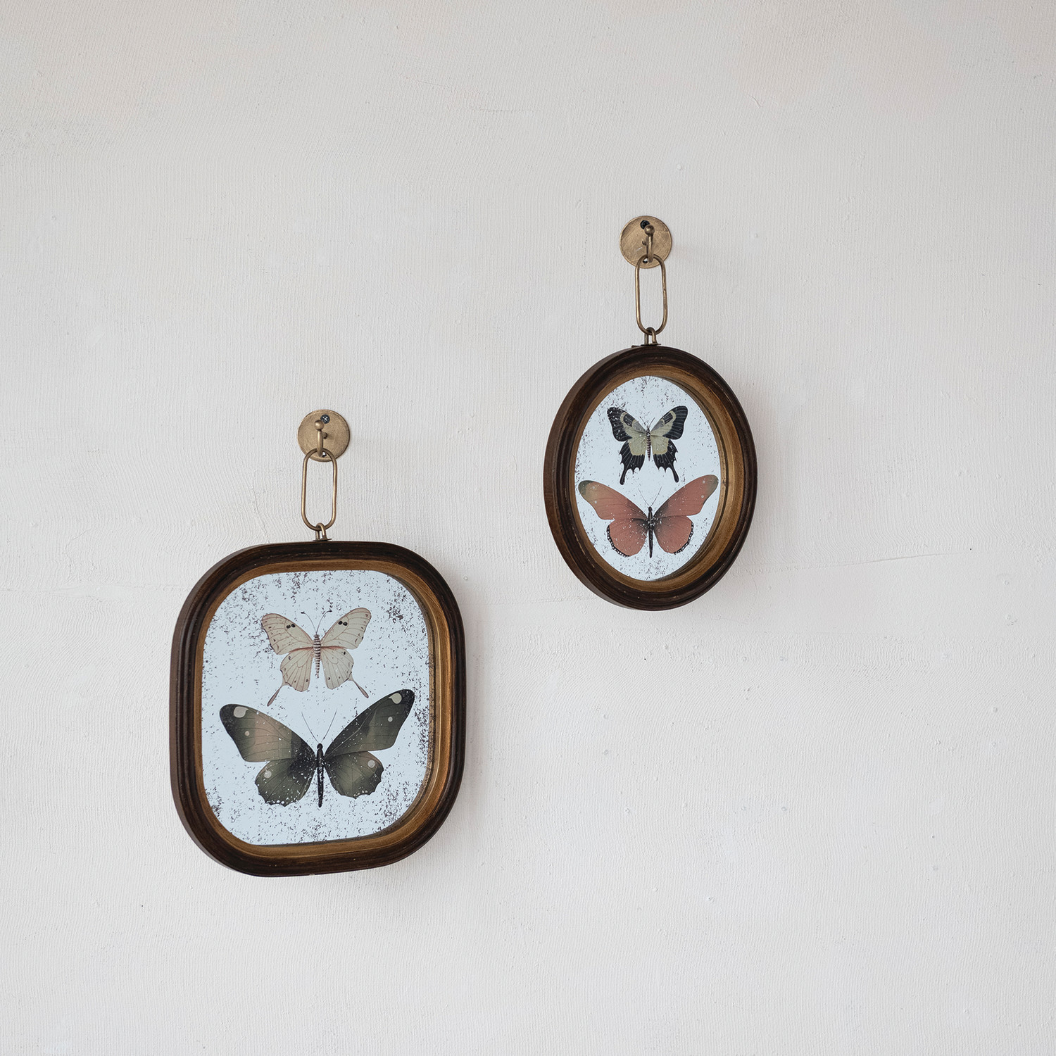 Wood Framed Antique Mirror Wall Decor with Butterflies & Metal Wall Hook, Set of 2