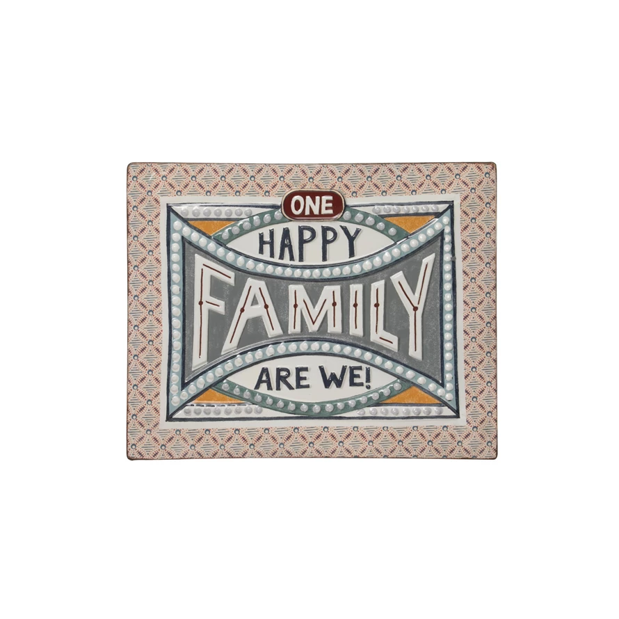 Catalog Name: 18-1/4"W x 14-1/2"H Embossed Enameled Metal Wall Décor "One Happy Family Are We!" ©