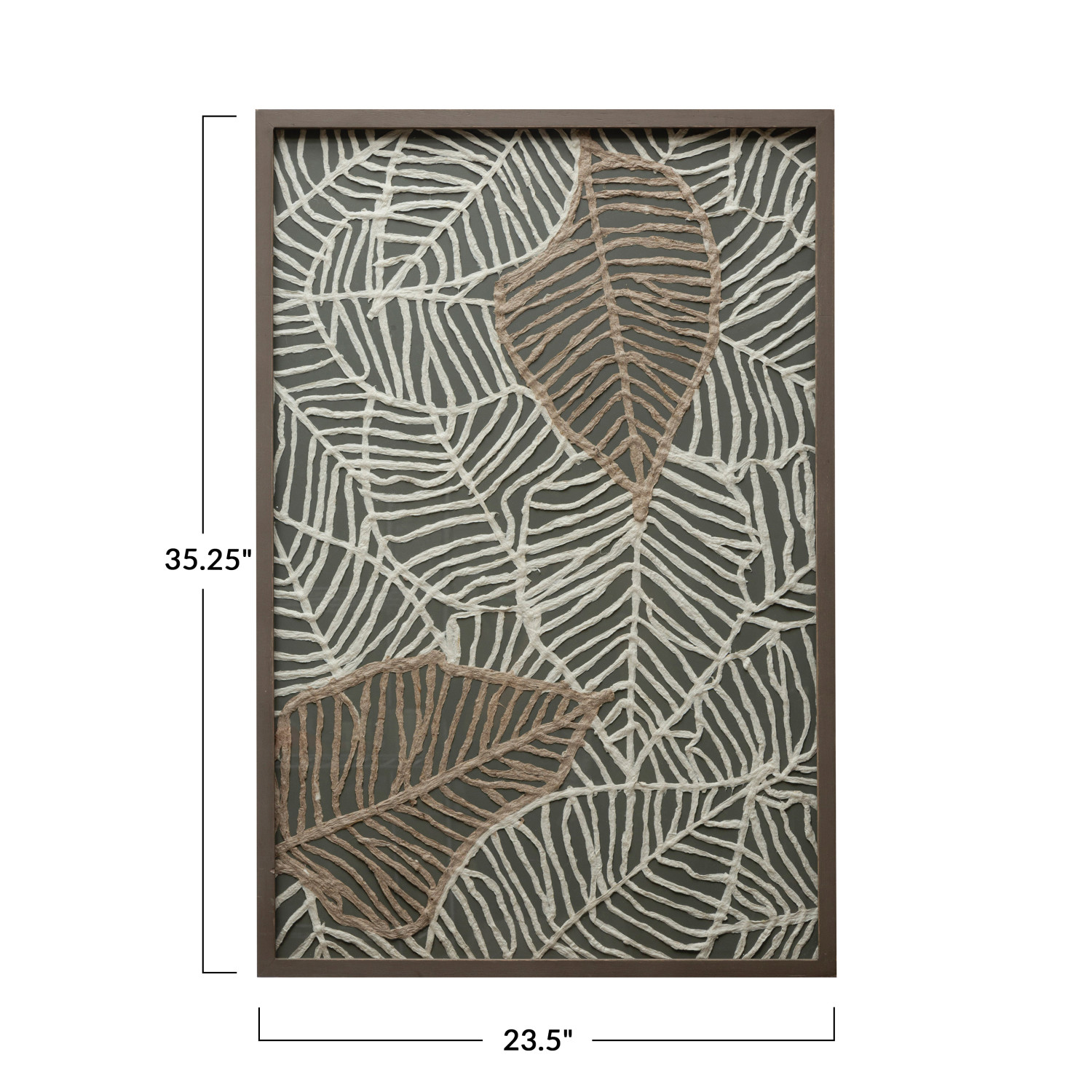 Catalog Name: 23-1/2"W x 35-1/4"H Wood Framed Glass Wall Décor w/ Handmade Textured Paper Leaves, Grey, White & Brown