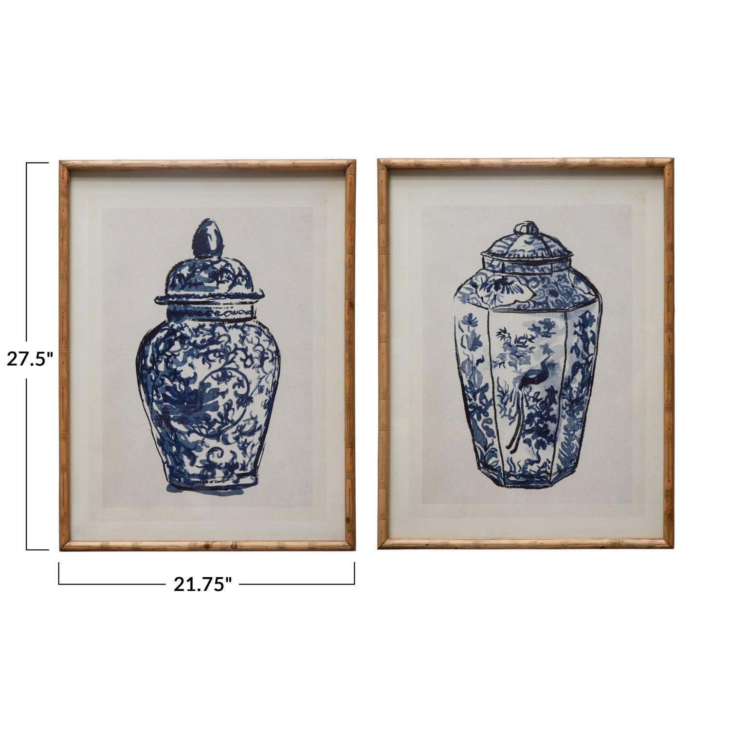 From framed canvases and abstract art compositions, to vintage reproductions and botanical prints, our carefully curated collection of wall art has the perfect item to complete any space. Explore an expansive catalog of pieces including nature-inspired prints, line drawings, inspirational quotes, hand-painted designs, and so much more. Choose from a vast selection of materials from glass and wood to canvas and fabric, and styles from contemporary boho and mid-century modern to classic farmhouse and vintage glam. Effortlessly amplify a room's dimensions, express personal style, create a stylish focal point, or simply make the perfect design statement or unique addition to a gallery wall. This timeless set of wall art features two styles of ginger jar illustrations encased in wood frames with glass covers. Display in a living space of any style from traditional to global. Equipped with mounting hardware on back for easy hanging. Made from wood and glass.