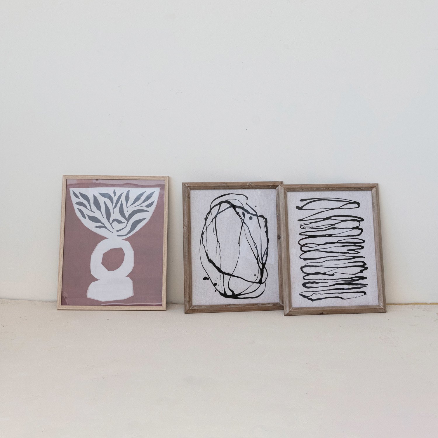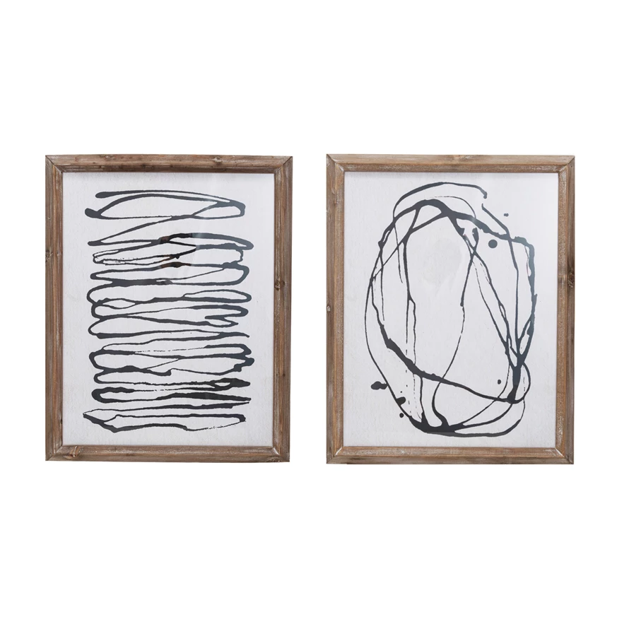 Wood Framed Glass Wall Décor w/ Abstract Line Art, 2 Styles